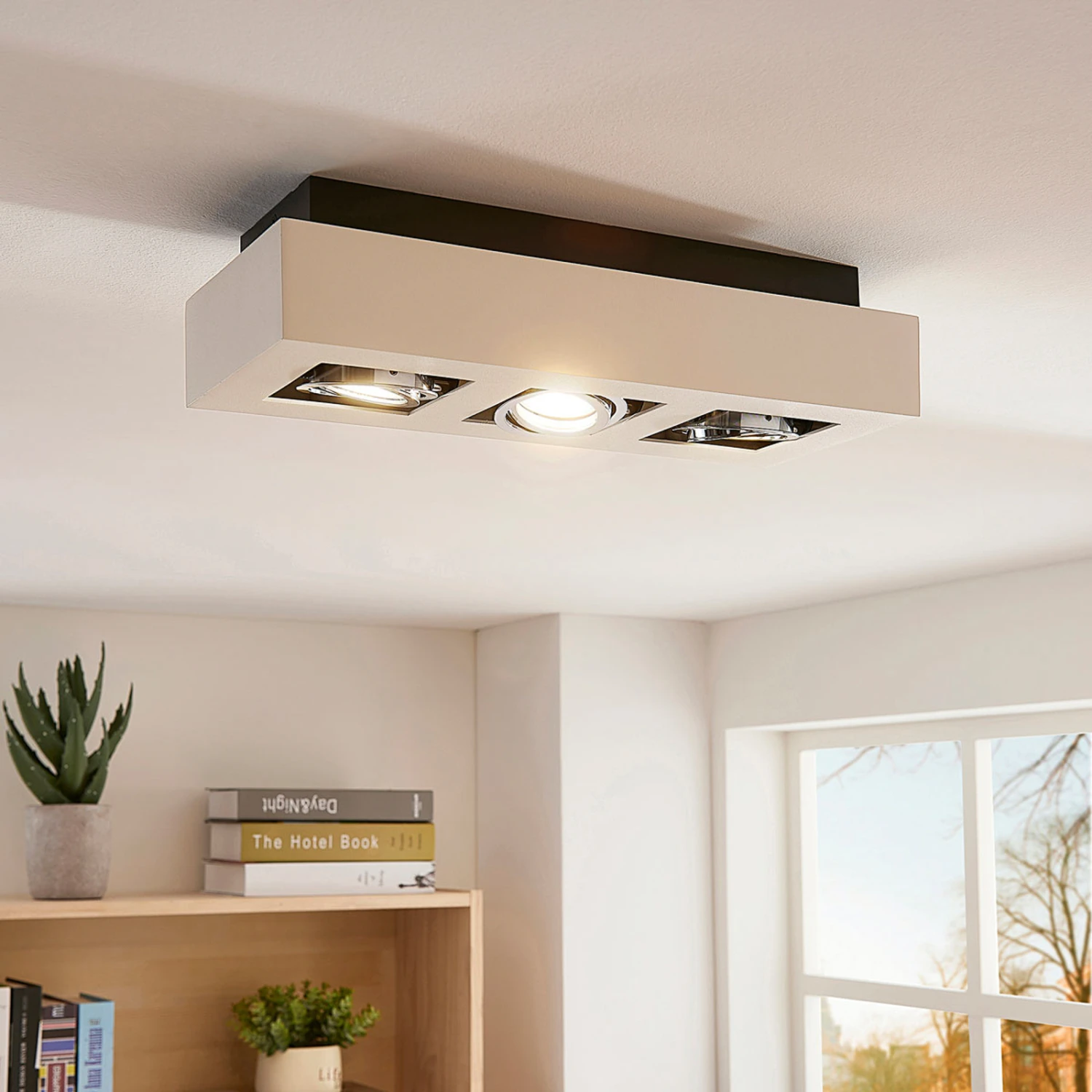 Eckige Deckenlampe Vince mit weißer Oberfläche und verstellbaren Einsätzen