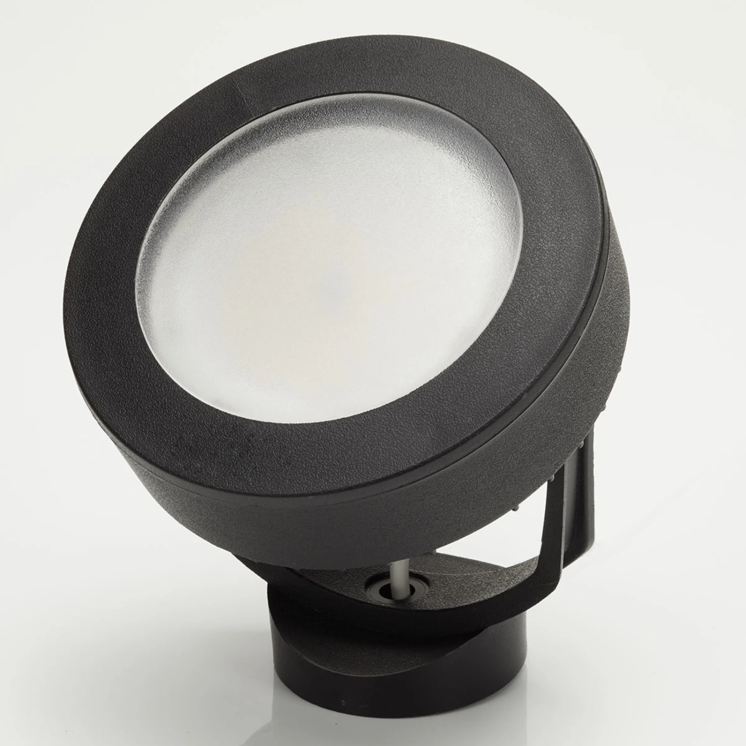 Der zur Wand- oder Bodenmontage konzipierte Strahler Tommy kommt optisch schlicht, ganz in schwarz und mit rundem Kopf daher. Eindrucksvoll ist jedoch seine Funktionalität. So kann das Licht, das durch eine gefrostete Polycarbonat-Scheibe abgegeben wird, dank einer verstellbaren Befestigung auf den gewünschten Bereich gerichtet werden. Zudem ist die Lichtfarbe in drei Stufen einstellbar; hierzu verfügt die GX53 LED-Lampe über einen kleinen Schalter. Wind und Wetter können dem Anbaustrahler dank des robusten Gießharz-Gehäuses und der Silikondichtungen nichts anhaben.