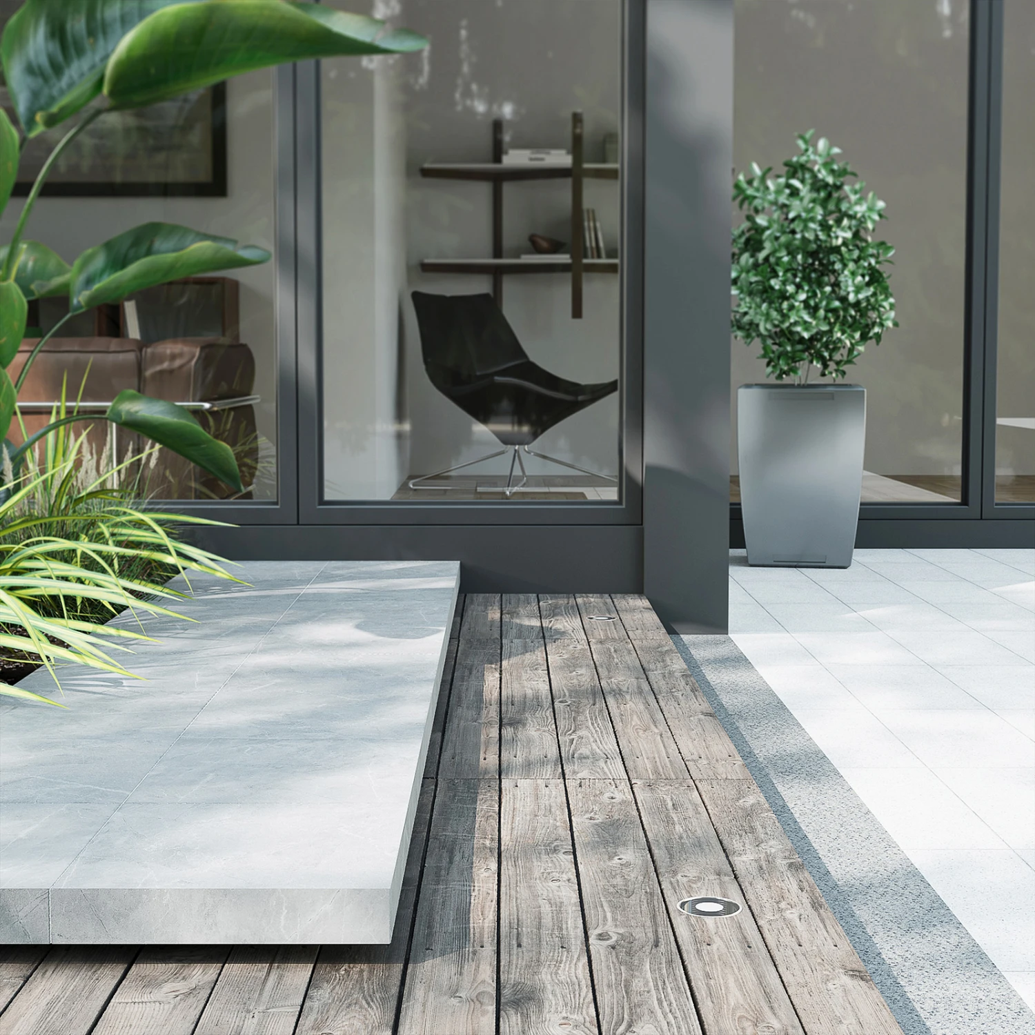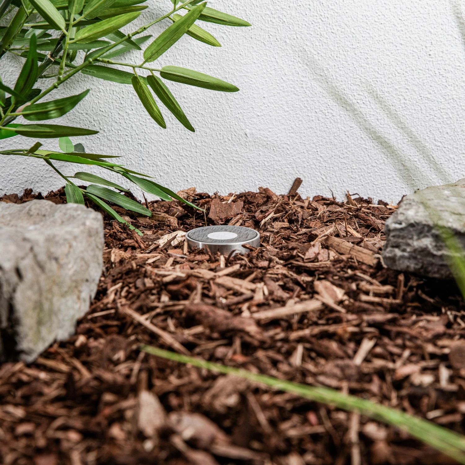 Kompakte LED-Bodeneinbauleuchte Gerrie aus schwarzem Aluminium Gerrie besteht aus schwarzem Aluminiumdruckguss und milchigem Glas, hinter dem festverbaute LEDs sitzen. Diese LEDs generieren eine warmweiße Beleuchtung, die ein attraktives Ambiente im Außenbereich generiert. Der Leuchtenkörper von Gerrie verschwindet fast komplett im Boden und eignet sich hervorragend für die Installation in einer Einfahrt. Das schlichte Design integriert sich mühelos in den Baustil eines Hauses und kombiniert man die LED-Bodeneinbaulampe Gerrie mit weiteren Leuchten ihrer Serie, so schafft man einen stimmigen Gesamteindruck. – Die Leuchte ist bis zu 5.000 kg befahrbar – Oberflächentemperatur max 48°C