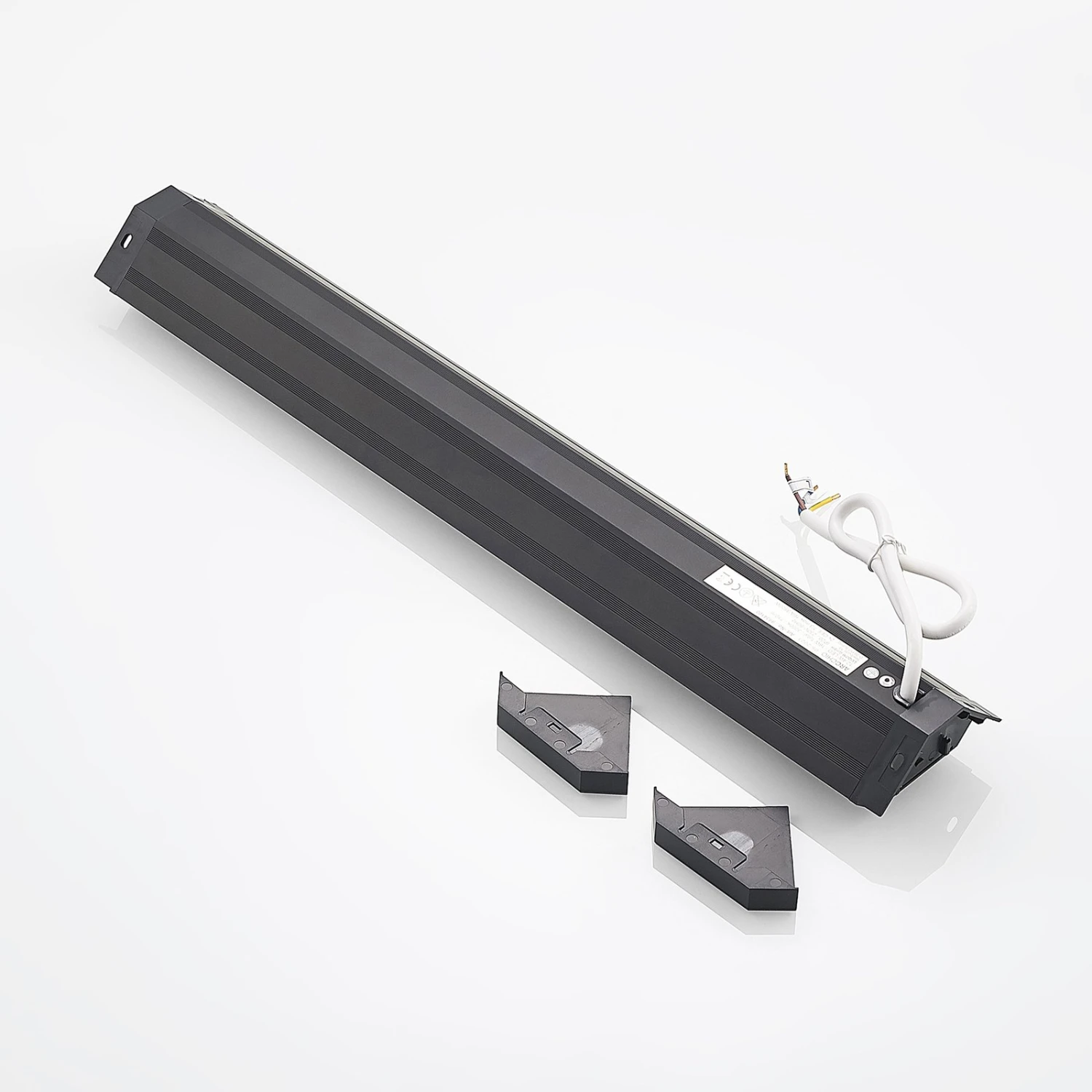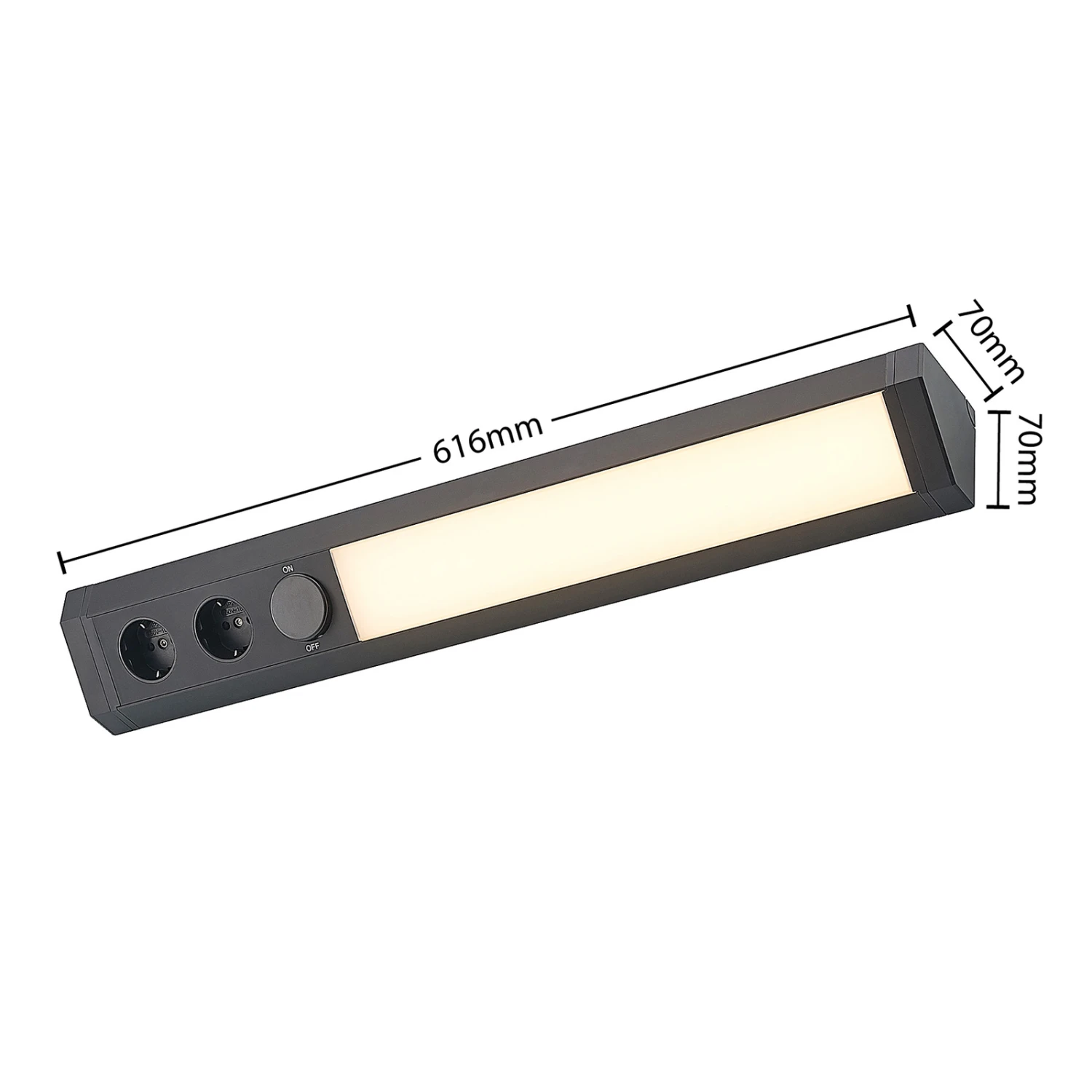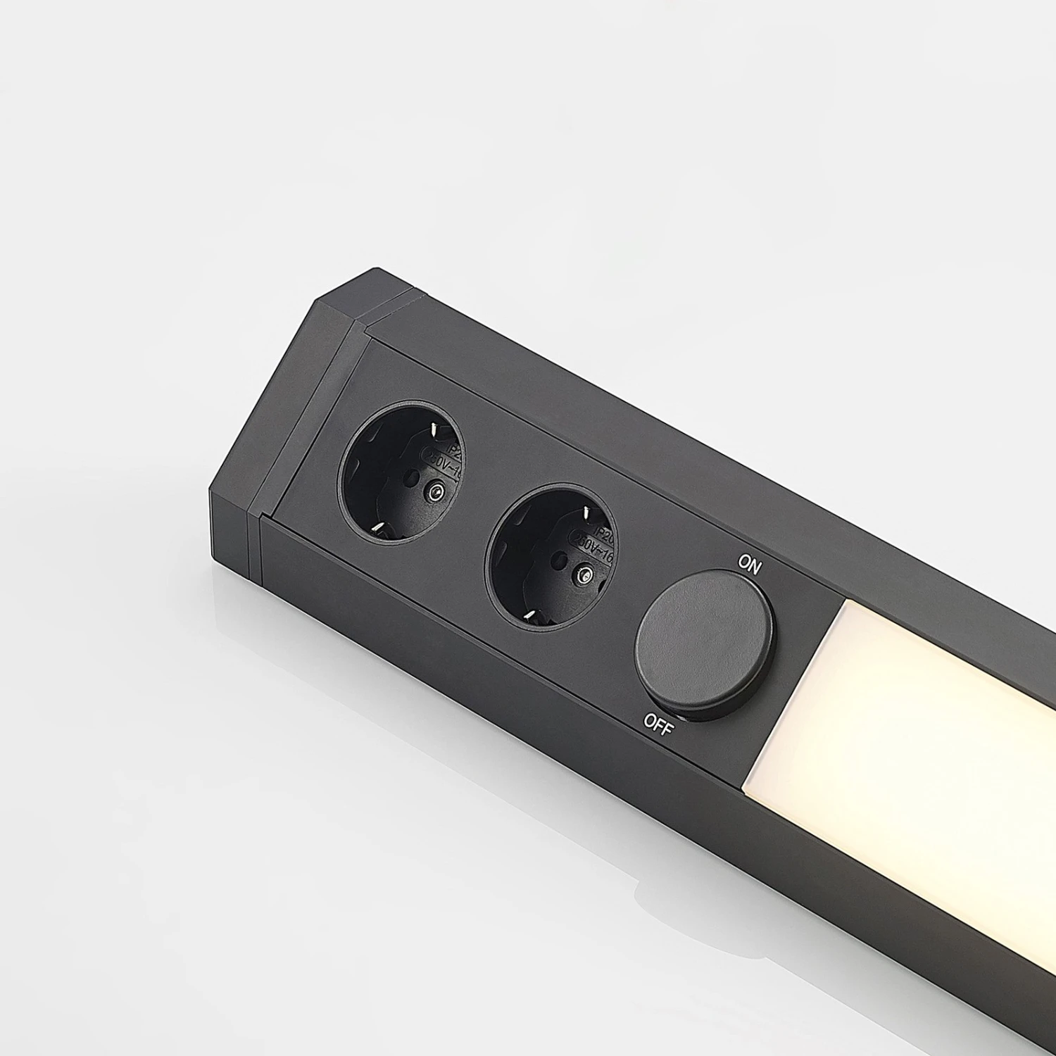 Dunkle LED-Unterbauleuchte Ovano mit zwei zusätzlichen Stromanschlüssen