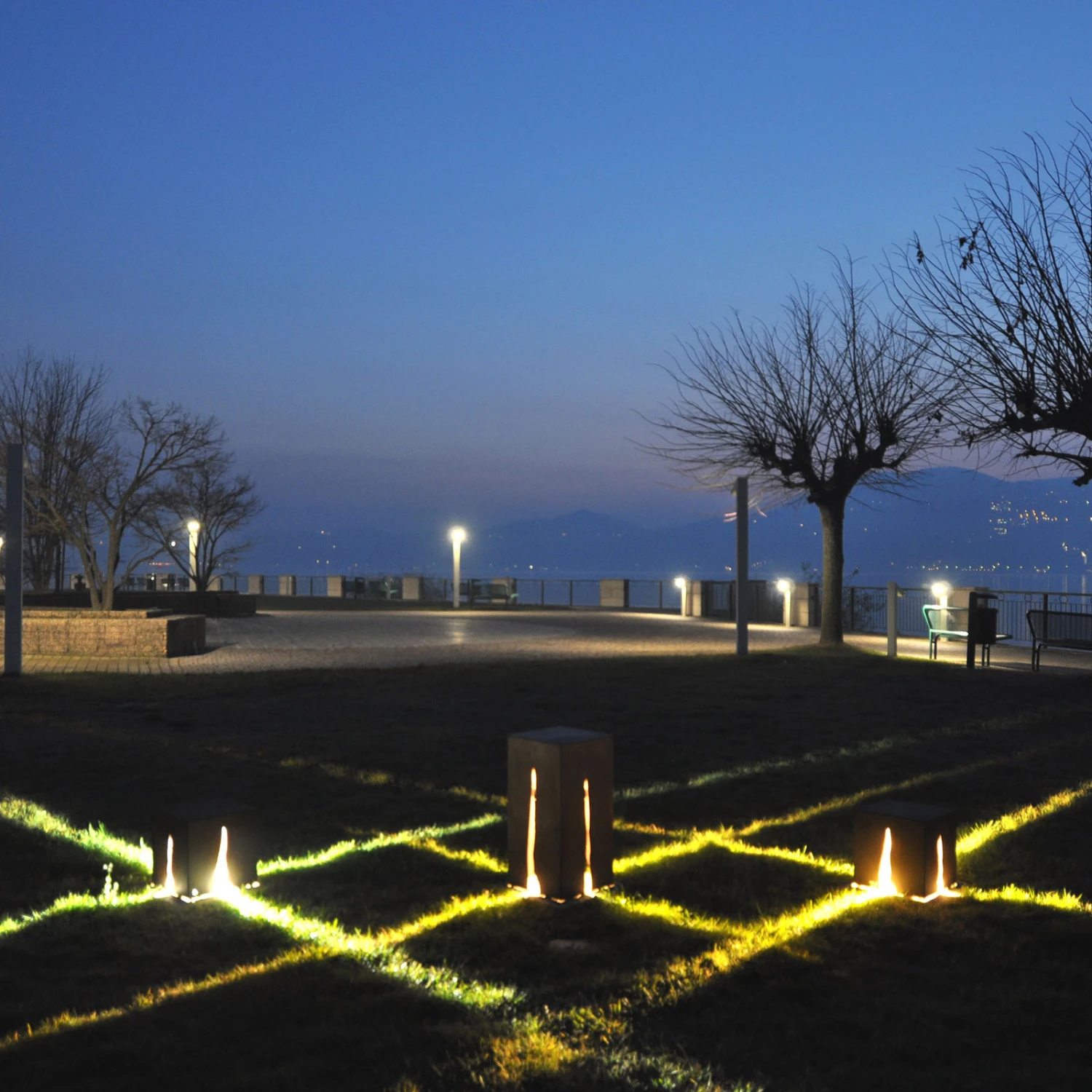 Quaderförmige Design-Wegeleuchte Granito mit vierseitiger Lichtabgabe