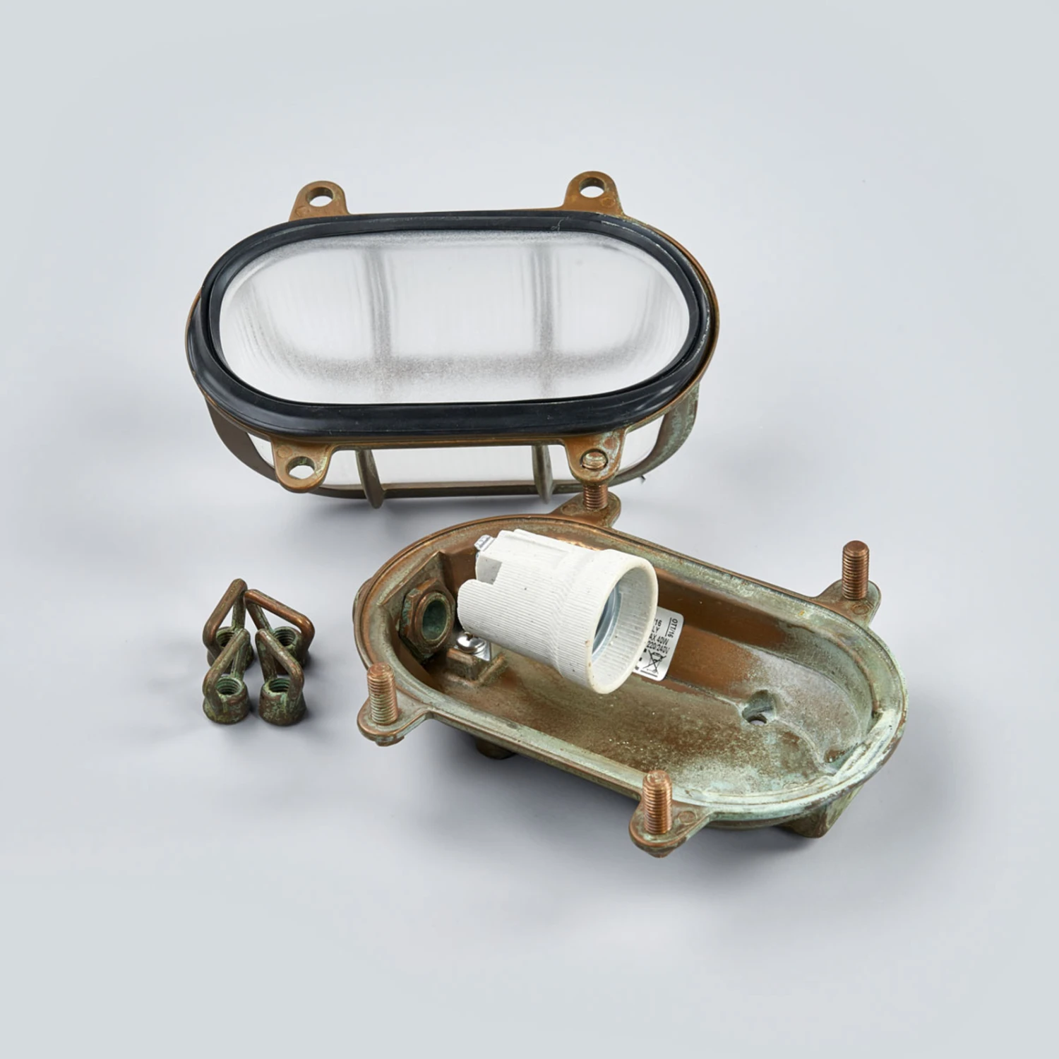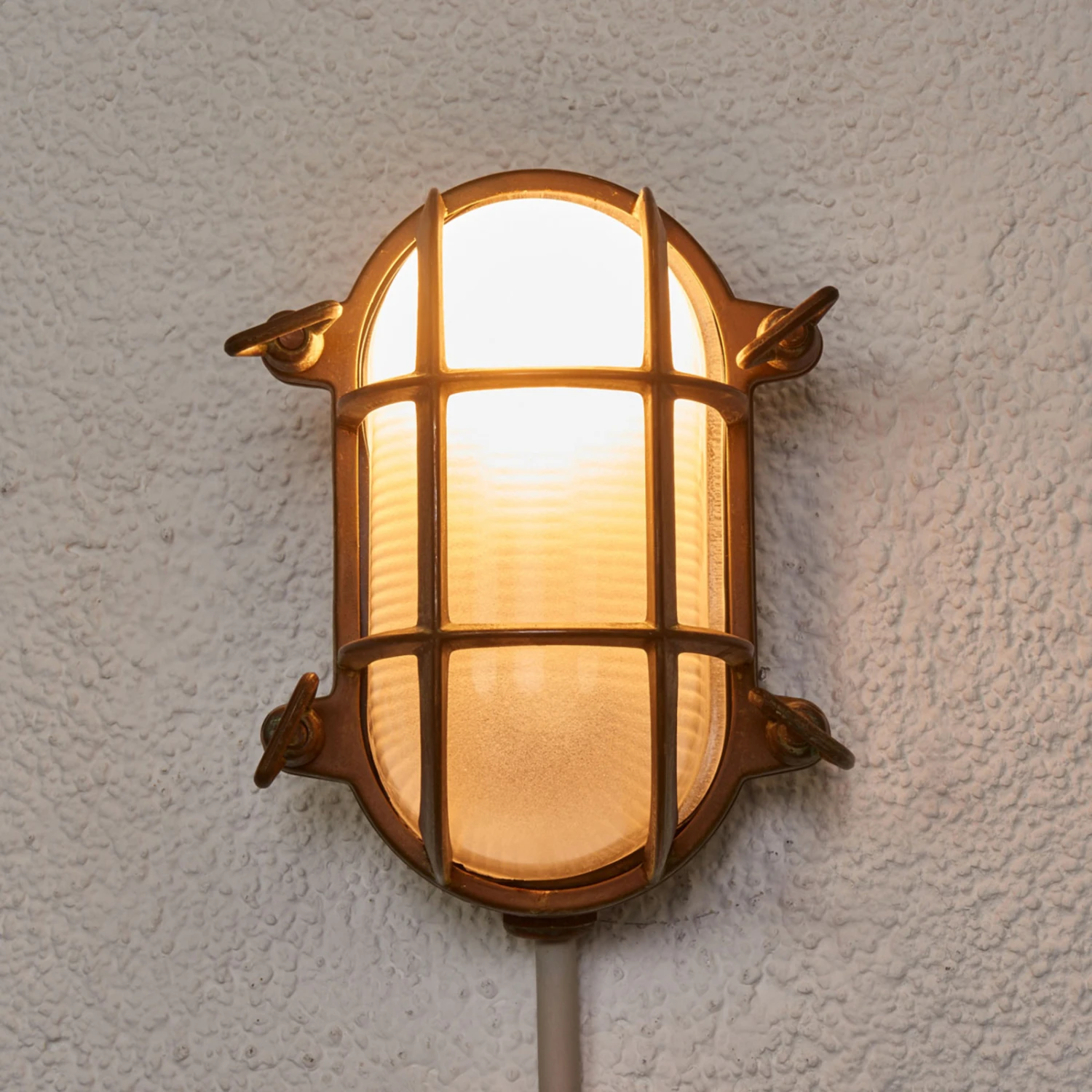 Ovale Außenwandleuchte Bengt schmückt Decken und Wände – messing-antik