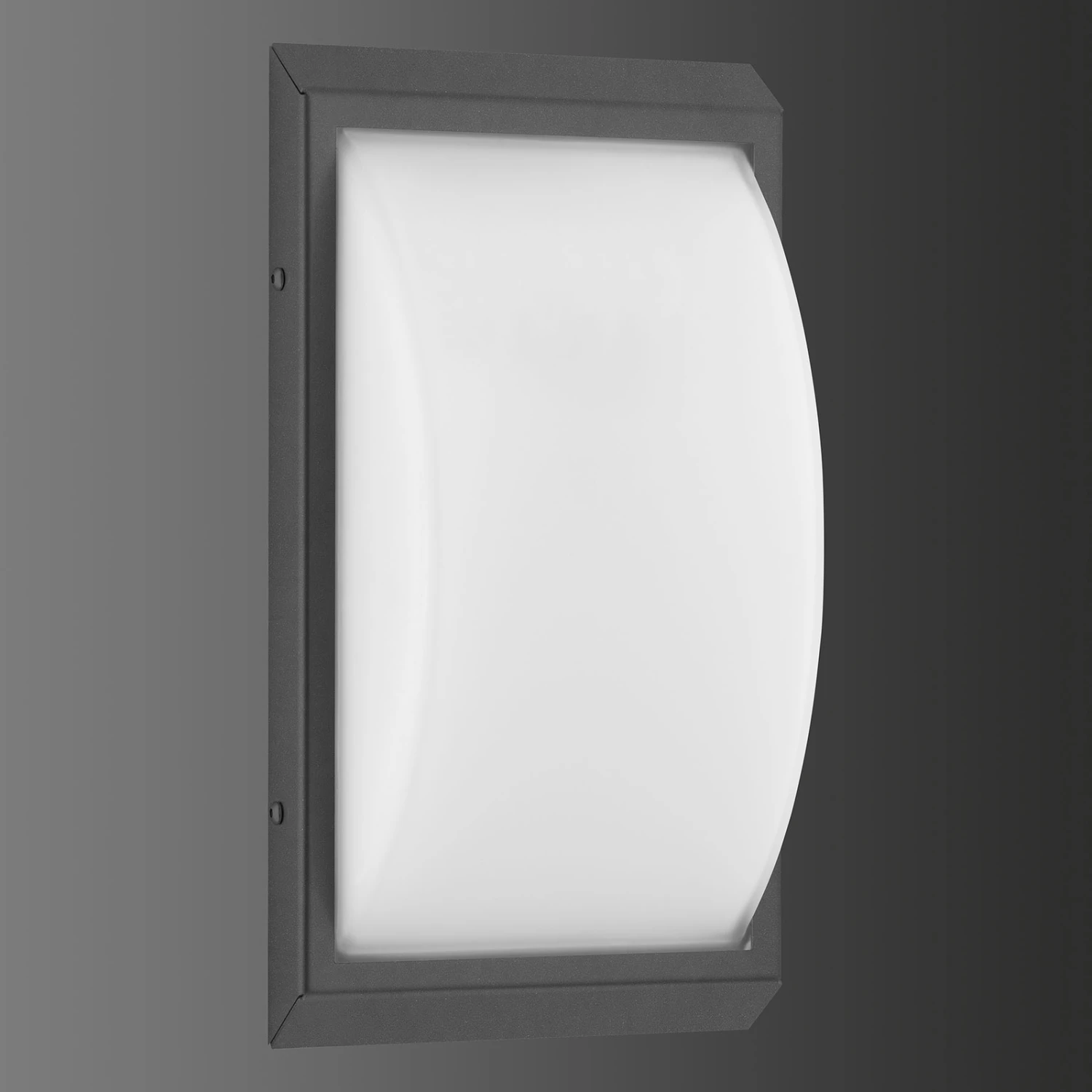 Rechteckige Außenwandleuchte 053 mit Opalglas-Diffusor, schwarzem Edelstahl-Rahmen und innenliegendem Bewegungsmelder