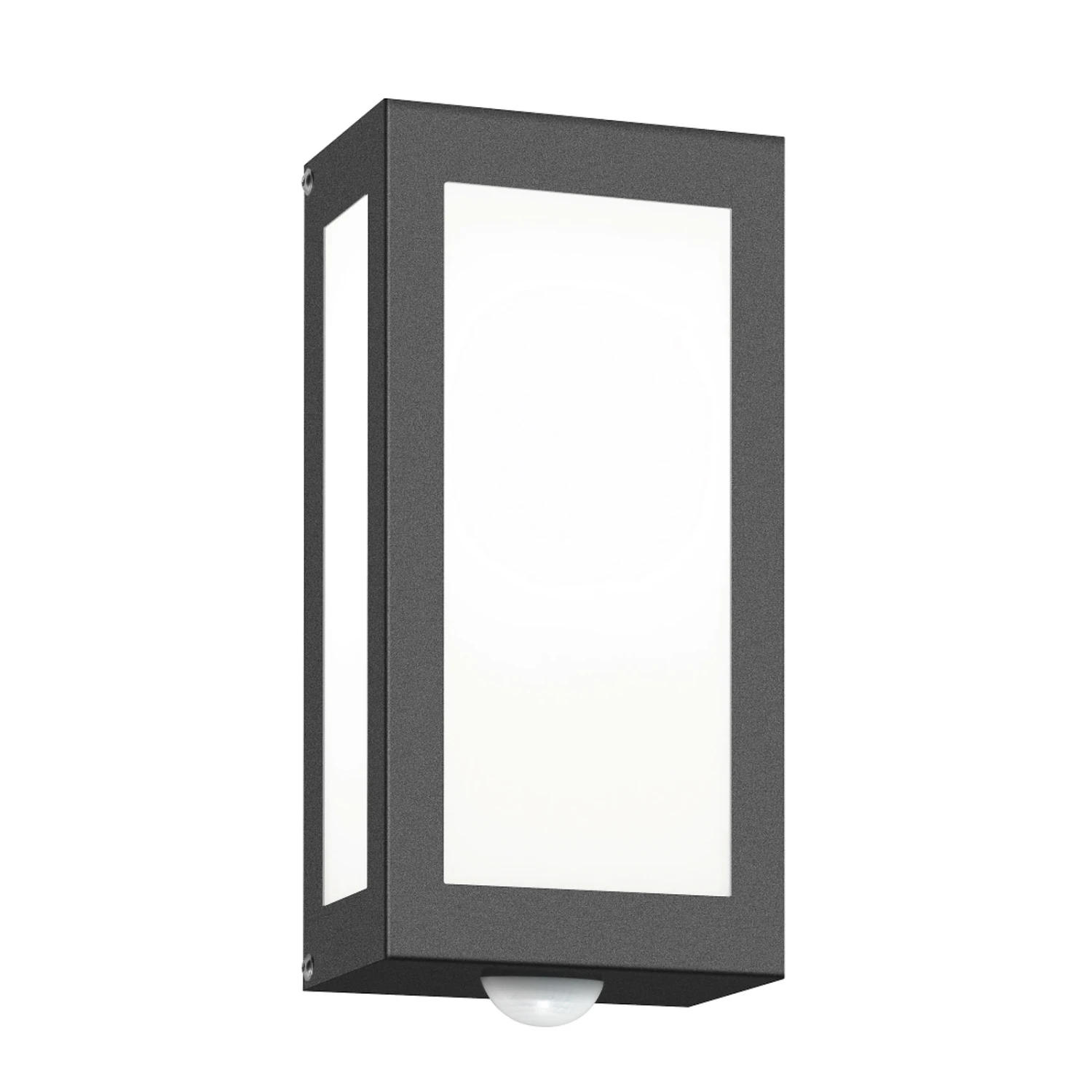 Der Edelstahlrahmen der eckig gestalteten Außenwandleuchte Aqua Rain wurde in Anthrazit pulverbeschichtet und sticht deshalb effektvoll vom weißen Glas ab. Ein integrierter Bewegungssensor mit einer Reichweite von bis zu 8 Metern und einem Erfassungswinkel von 200° sorgt für automatisches Einschalten des Lichtes immer dann, wenn es benötigt wird. Die Leuchte kann mit allen Arten von Leuchtmitteln mit Sockel E27 bestückt werden, aufgrund der im Vergleich zu Energiesparlampen sehr hohen Schaltfestigkeit empfiehlt sich der Einsatz von LED-Lampen, um den Außenbereich energiesparend zu beleuchten.