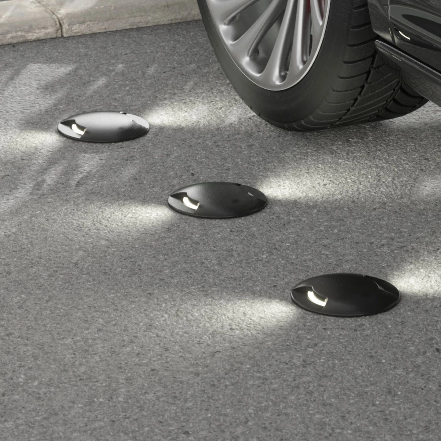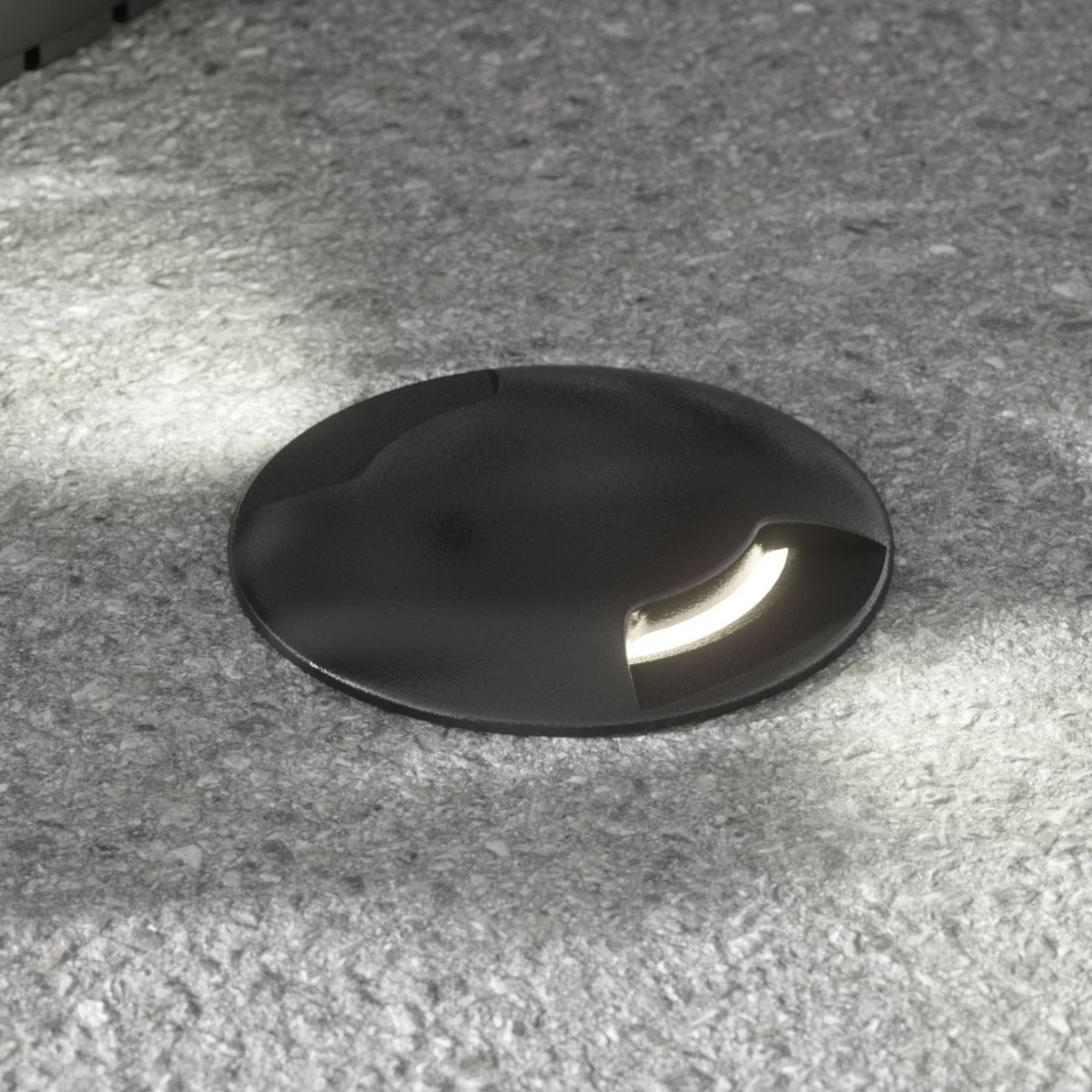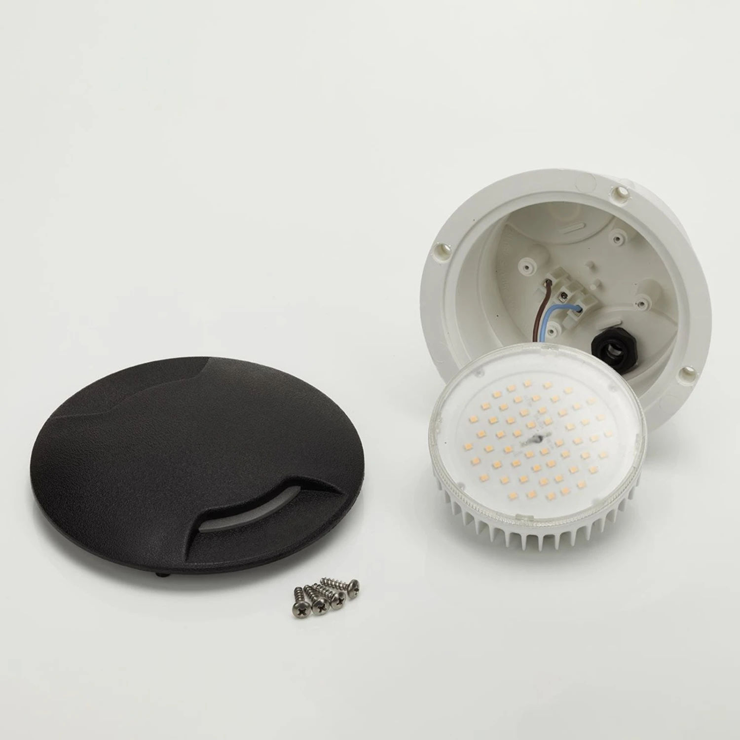 Die gegen mechanische Belastungen bestens geschützte LED-Einbauleuchte kann selbst in befahrenden Abschnitten auf dem Grundstück installiert werden. Sie fällt mit ihrem schwarzen Gehäuse aus Gießharz tagsüber kaum auf. Im Betrieb wird das Licht der leistungsstarken GX53 LED-Lampe durch zwei schmale, mit gefrostetem Polycarbonat verschlossene Öffnungen zu beiden Seiten emittiert. Die Farbtemperatur kann mittels Mini-Schalter direkt am Leuchtmittel auf 3.000 K, 4.000 K oder 6.500 K festgelegt werden.