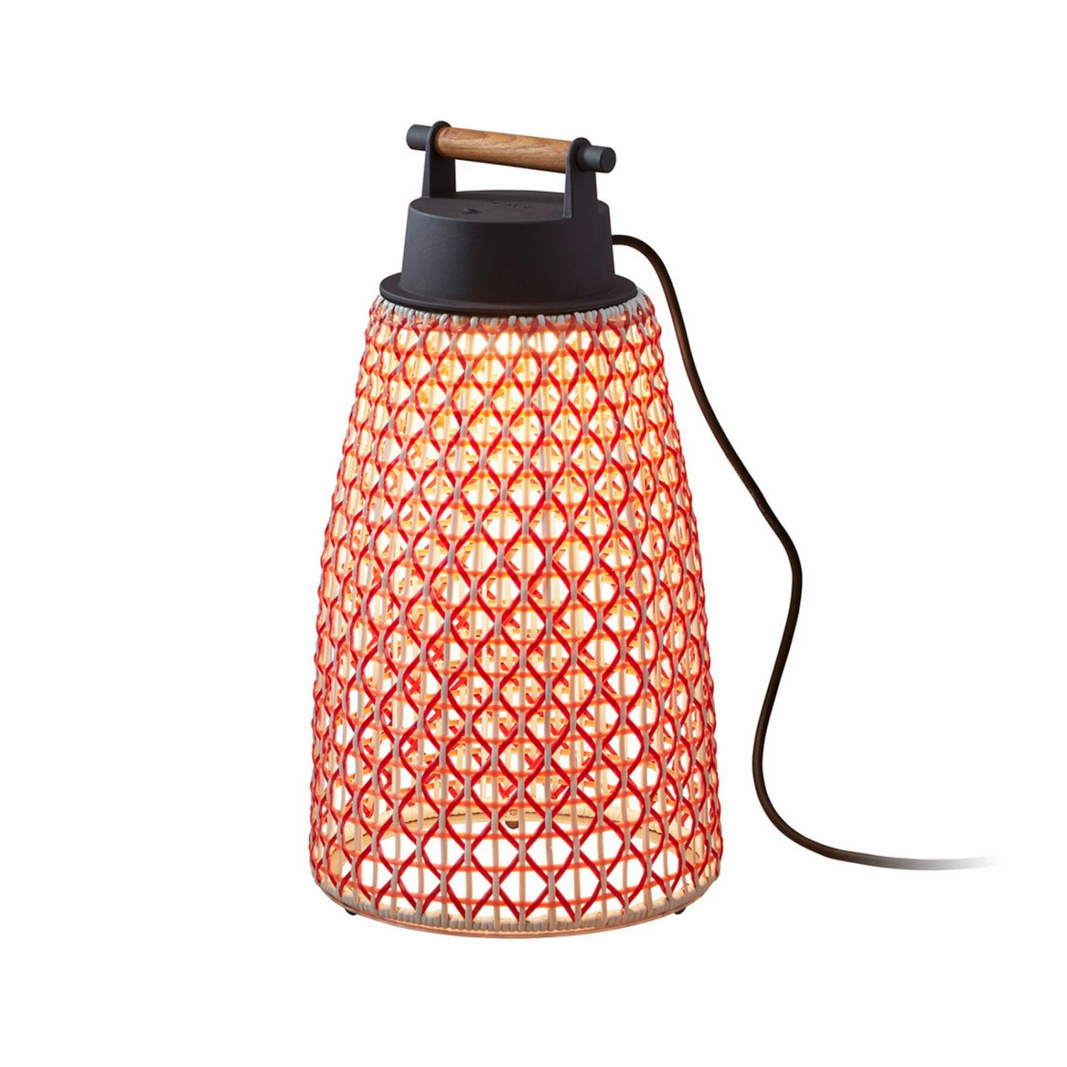 Die Outdoor-Tischleuchte Nans hat einen Schirm aus einem Flechtgewebe, das aus synthetischen Fasern besteht. Die Schutzart IP54 schützt die Leuchte vor Feuchtigkeit und Staub, so dass sie problemlos im Außenbereich, also in Pavillons, auf der Terrasse oder dem Balkon einsetzbar ist. Inklusive Zuleitung und Schukostecker.