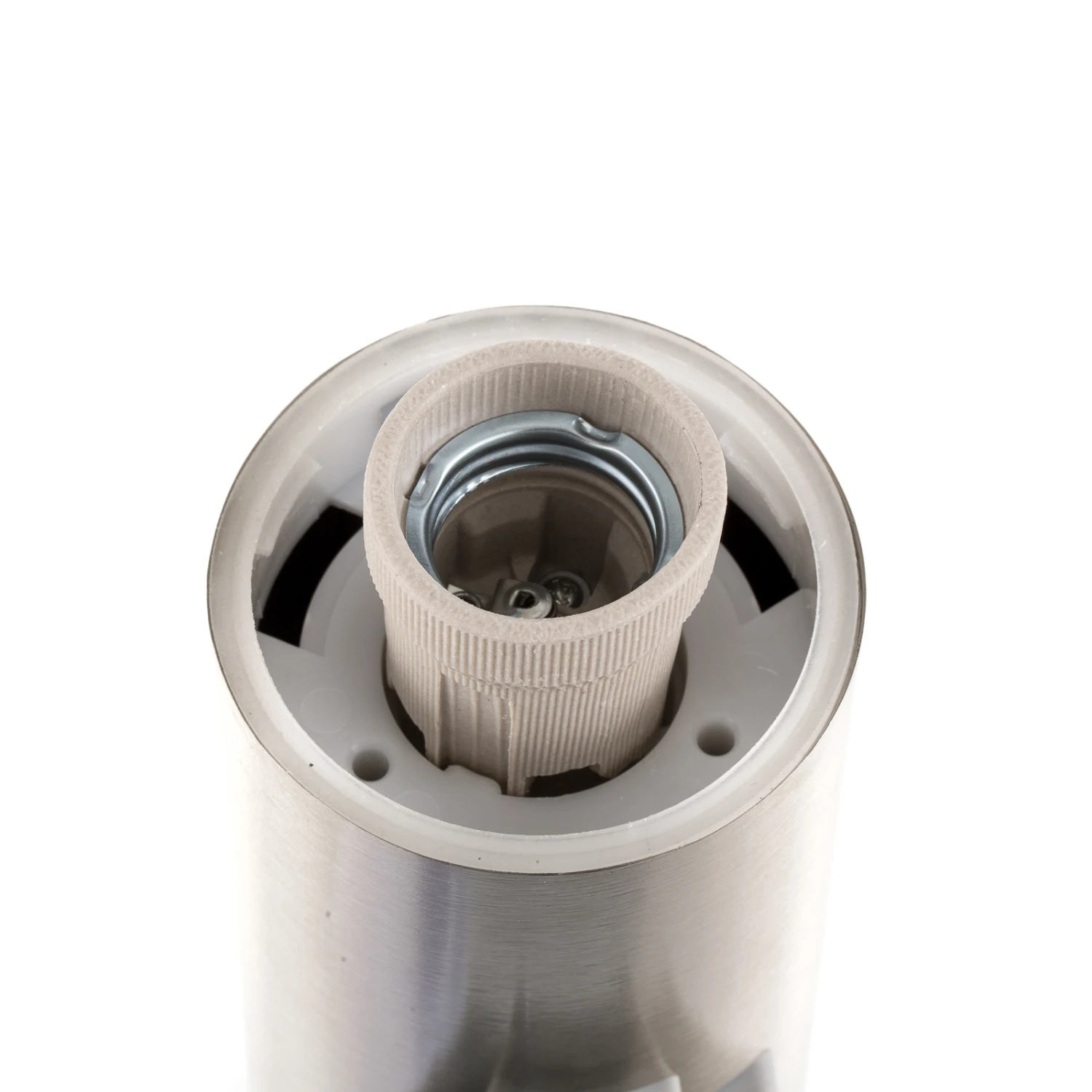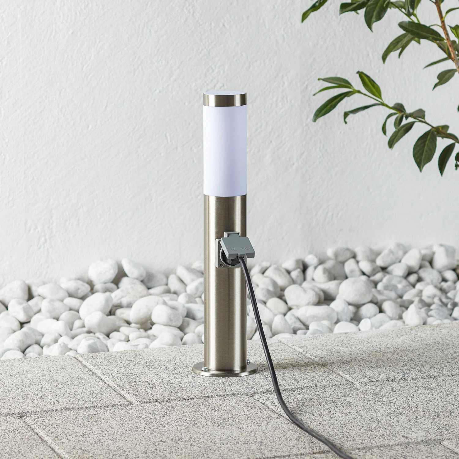 Das Gehäuse aus Edelstahl verleiht Chorus eine moderne Optik und Widerstandsfähigkeit gegen Witterungseinflüsse. Im oberen Bereich ist ein matter Kunststoffdiffusor eingebettet, der das Licht der einzusetzenden E27-Lampe (siehe Zubehör) gleichmäßig verteilt. Der Fuß wird im Untergrund verschraubt (Montagematerial enthalten). Die 230 V-Steckdose am unteren Abschnitt der Leuchte ist mit einer Kunststoff-Abdeckung geschützt.
