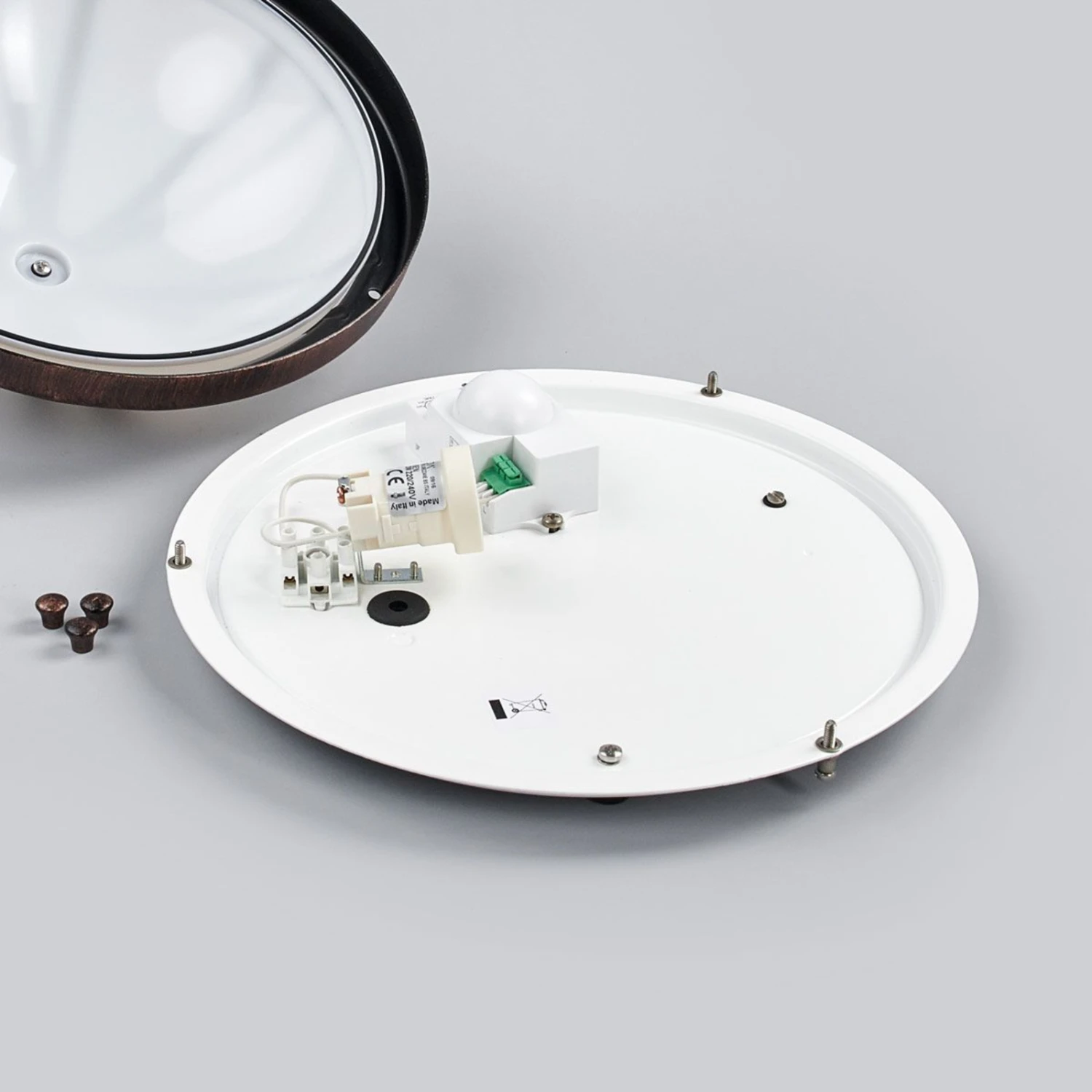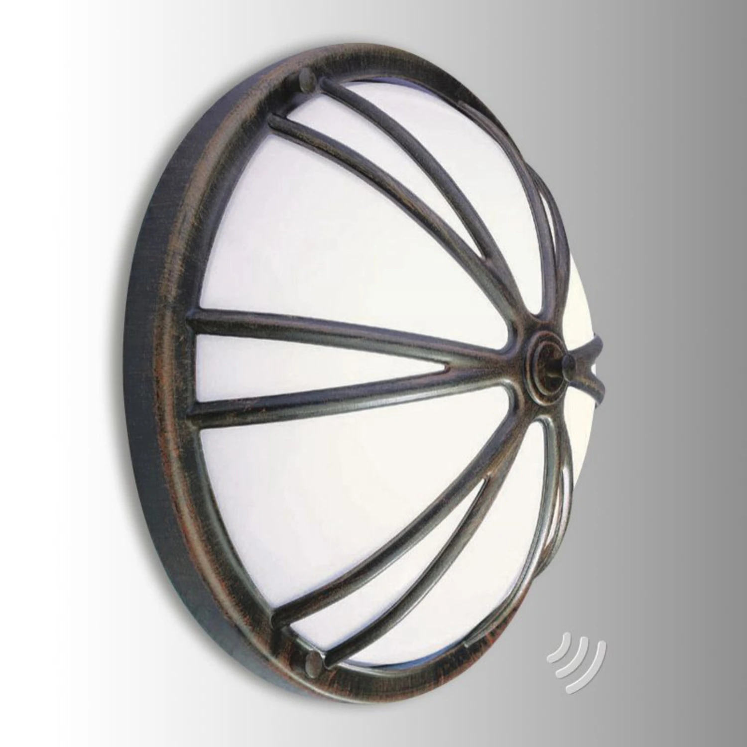 Die Außenwandleuchte Cervinia besteht aus Aluminium sowie Polycarbonat und wirkt durch ihr schwarz-kupferfarbenes Finish relativ nostalgisch. Es handelt sich jedoch um eine Leuchte mit modernster Technik. Sie ist mit einem Sensor ausgestattet. Daher schaltet sich die Leuchte automatisch ein, sobald sich ihr jemand nähert. Mit der Schutzart IP54 ist sie staubgeschützt und sicher vor Spritzwasser aus allen Richtungen. Die Leuchtdauer lässt sich von 8 Sekunden bis 12 Minuten einstellen. Reichweite 160°.