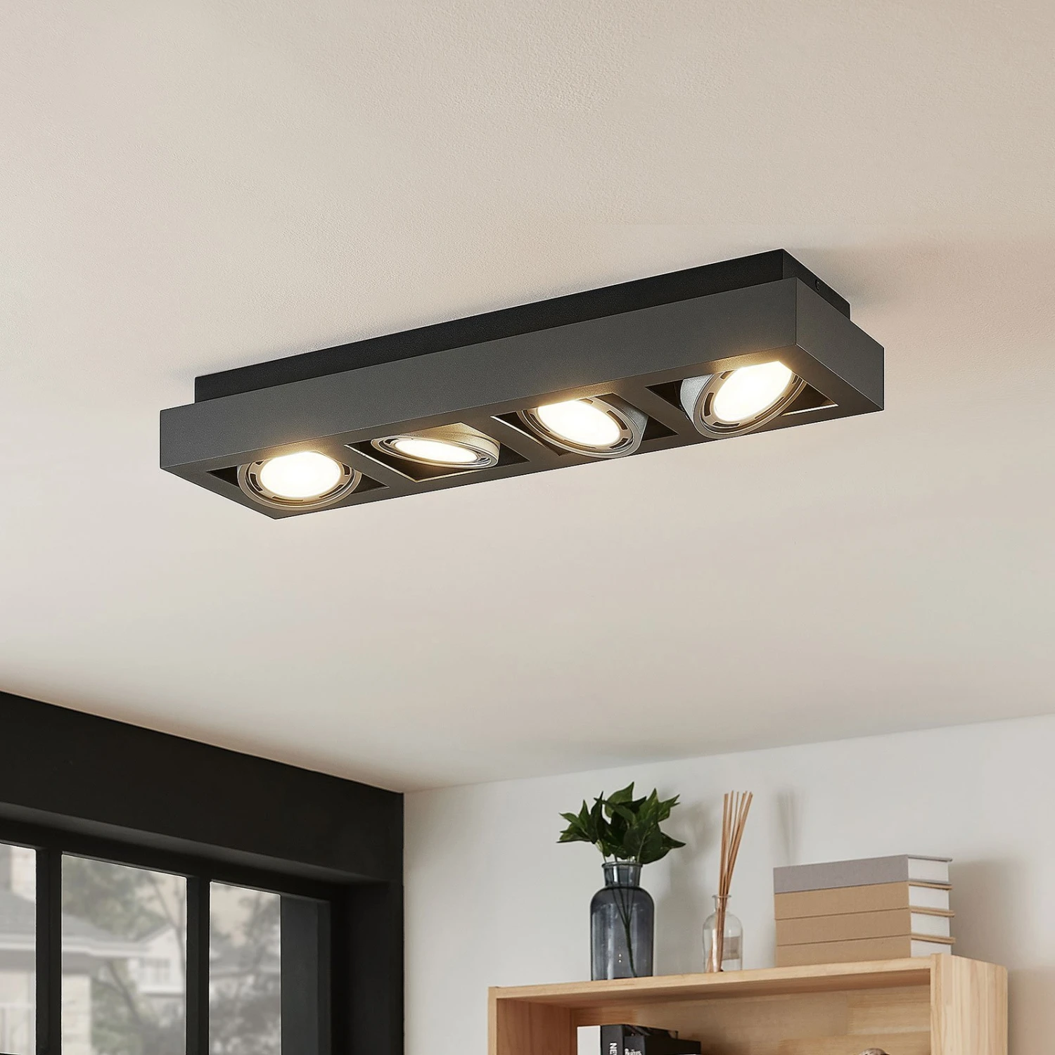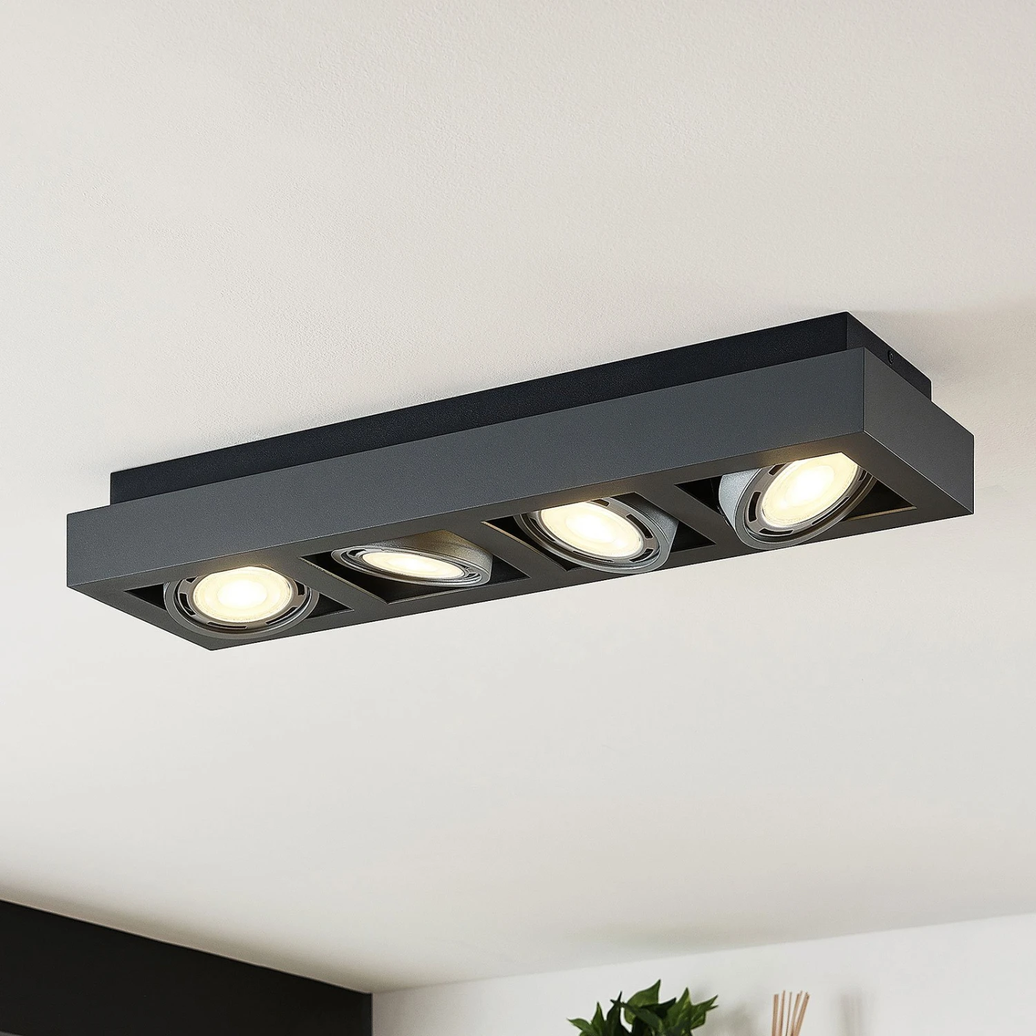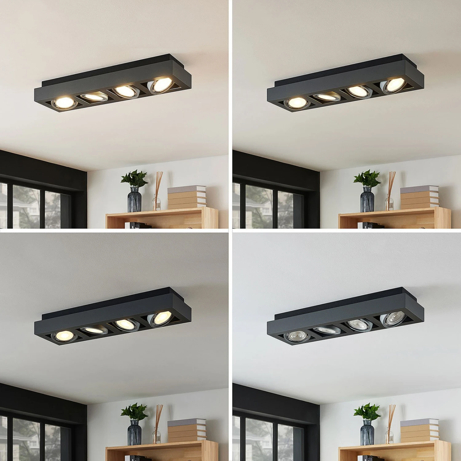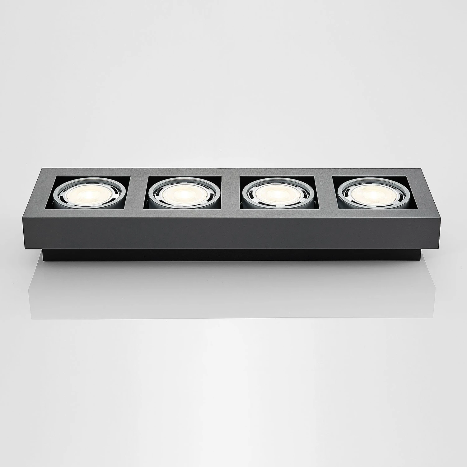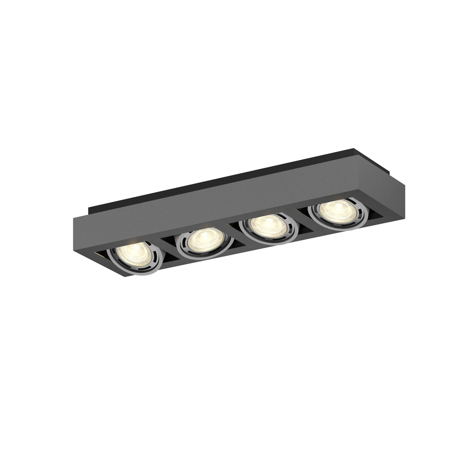 Der Einsatz mit der GU10-Fassung, von dem hier gleich vier Stück verbaut sind, kann bedarfsgerecht geschwenkt werden, damit man den Lichtschein beliebig anzupassen vermag. Damit eignet sich die Deckenleuchte hervorragend für den Einsatz im gewerblichen Bereich, wo man Ronka beispielsweise schön als Beleuchtung in einem gut sortierten Shopgeschäft nutzen kann.
