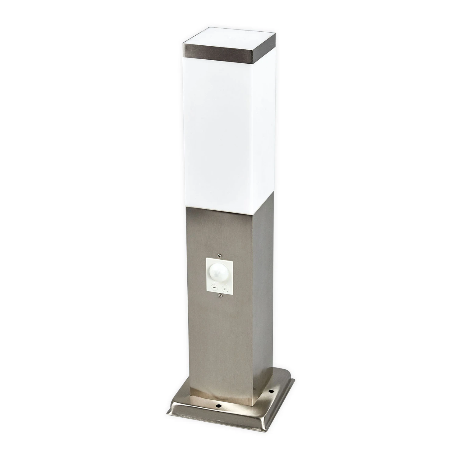 Lorian – mit Sensor bestückte Edelstahl-Sockelleuchte in eckiger Form