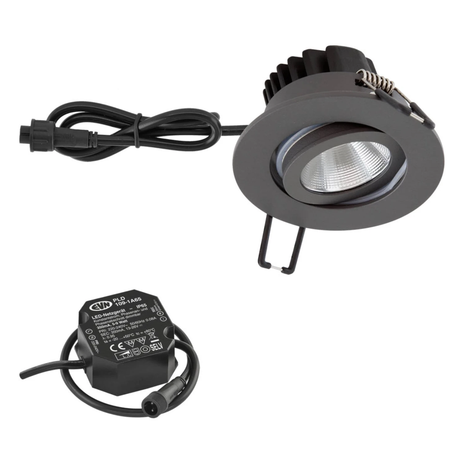 Schwenkbare LED-Außeneinbauleuchte PC65 mit Netzgerät