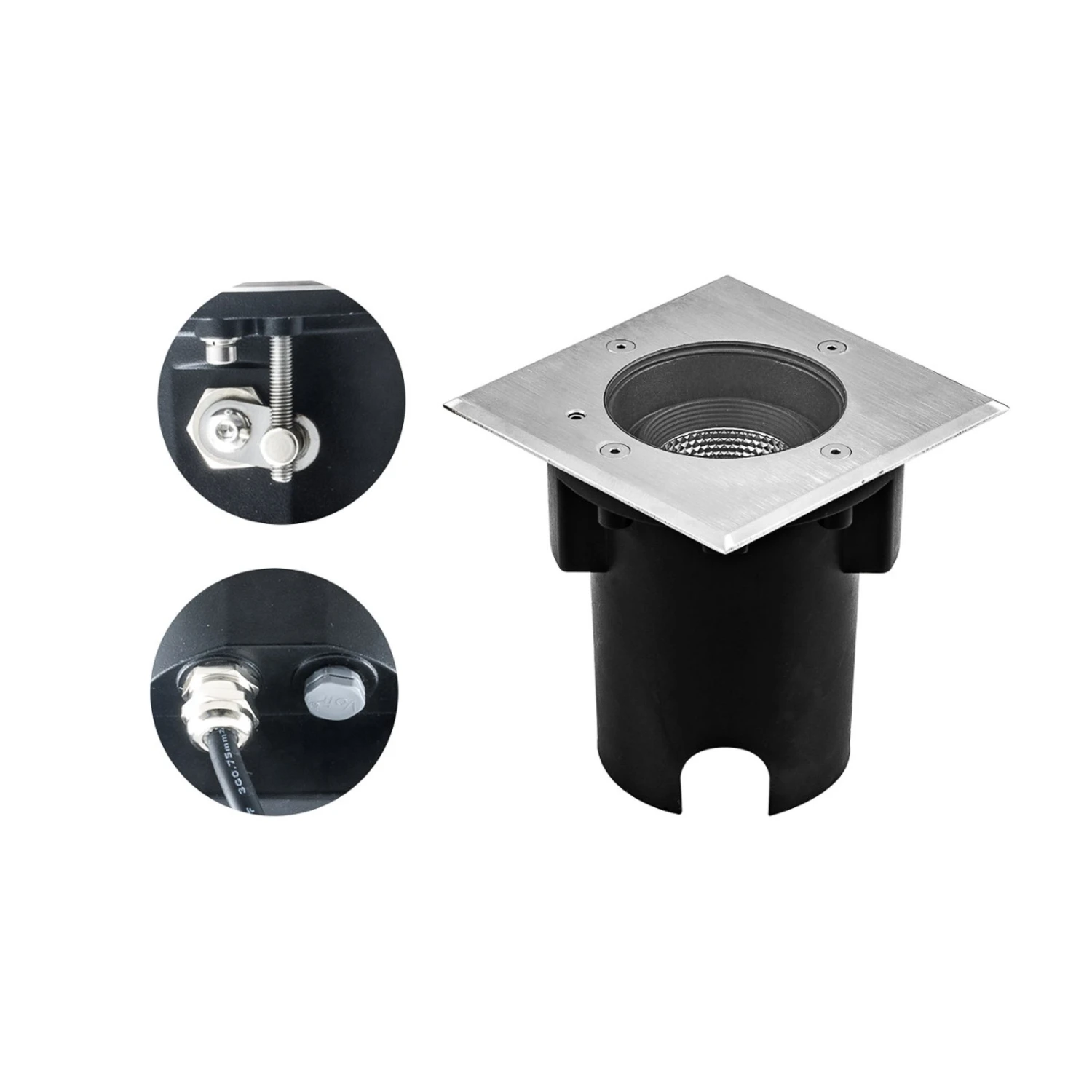Quadratische LED-Bodeneinbauleuchte Pentola in robuster Bauweise – zum Außeneinsatz geeignet