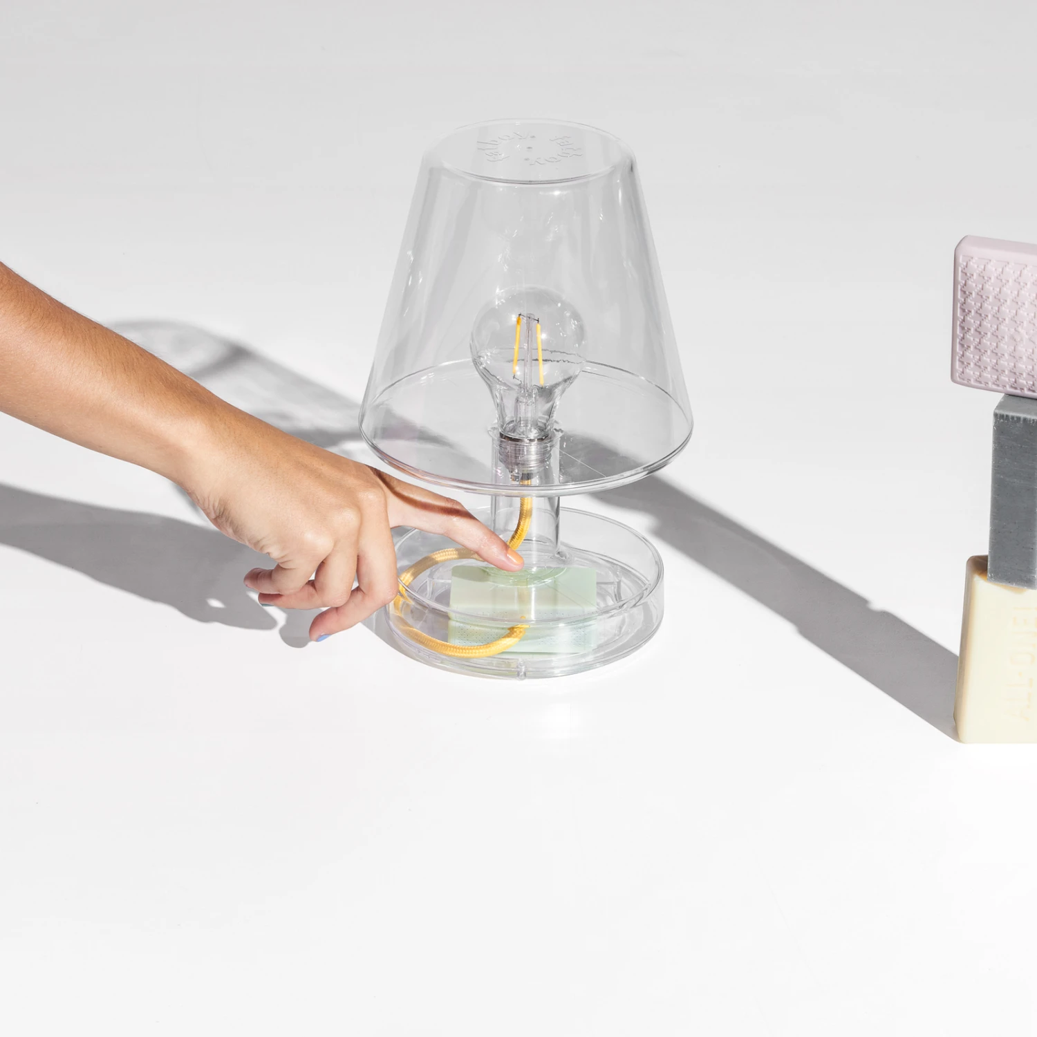 Die LED-Tischleuchte Transloetje ist ein echter Blickfang und sieht einfach cool aus – egal ob angeschaltet oder nicht. Durch die transparente Optik ist sämtliche Technik sichtbar. Die LED-Lichtquelle wurde in der Art einer Filament-Glühbirne dargestellt und kann durch die glasklare Sicht rundum die Umgebung erleuchten. Ein buntes Kabel schlängelt sich zum verbauten Akku, der je nach Helligkeitsstufe bis zu 20 Stunden Brenndauer leisten kann. Anschließend wird er ganz bequem über ein USB-Kabel aufgeladen. Denn die Tischlampe ist kabellos und damit flexibel platzierbar.