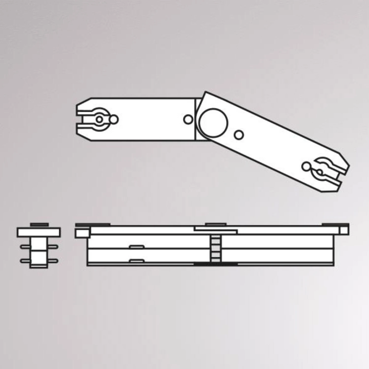 Dieser Flexverbinder dient zur Koppelung von zwei Schienen des Volare 2-Phasen-Schienensystems in einem Winkel von 70° bis 150°, wodurch eine vielseitigere Positionierung benachbarter Scheinen ermöglicht wird.