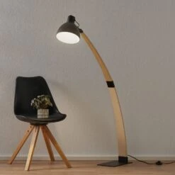 Beim Anblick der Stehleuchte Curf werden sofort Assoziationen zu Leichtigkeit und Frische geweckt. Das Design der Leuchte ist grazil und durch den Körper aus hellem Holz wirkt sie natürlich und naturverbunden. Lampenschirm, Fuß und das mittig platzierte Highlight aus Metall verleihen der Leuchte Modernität. Der Lampenschirm hat eine angenehme Größe ohne aufdringlich zu wirken.