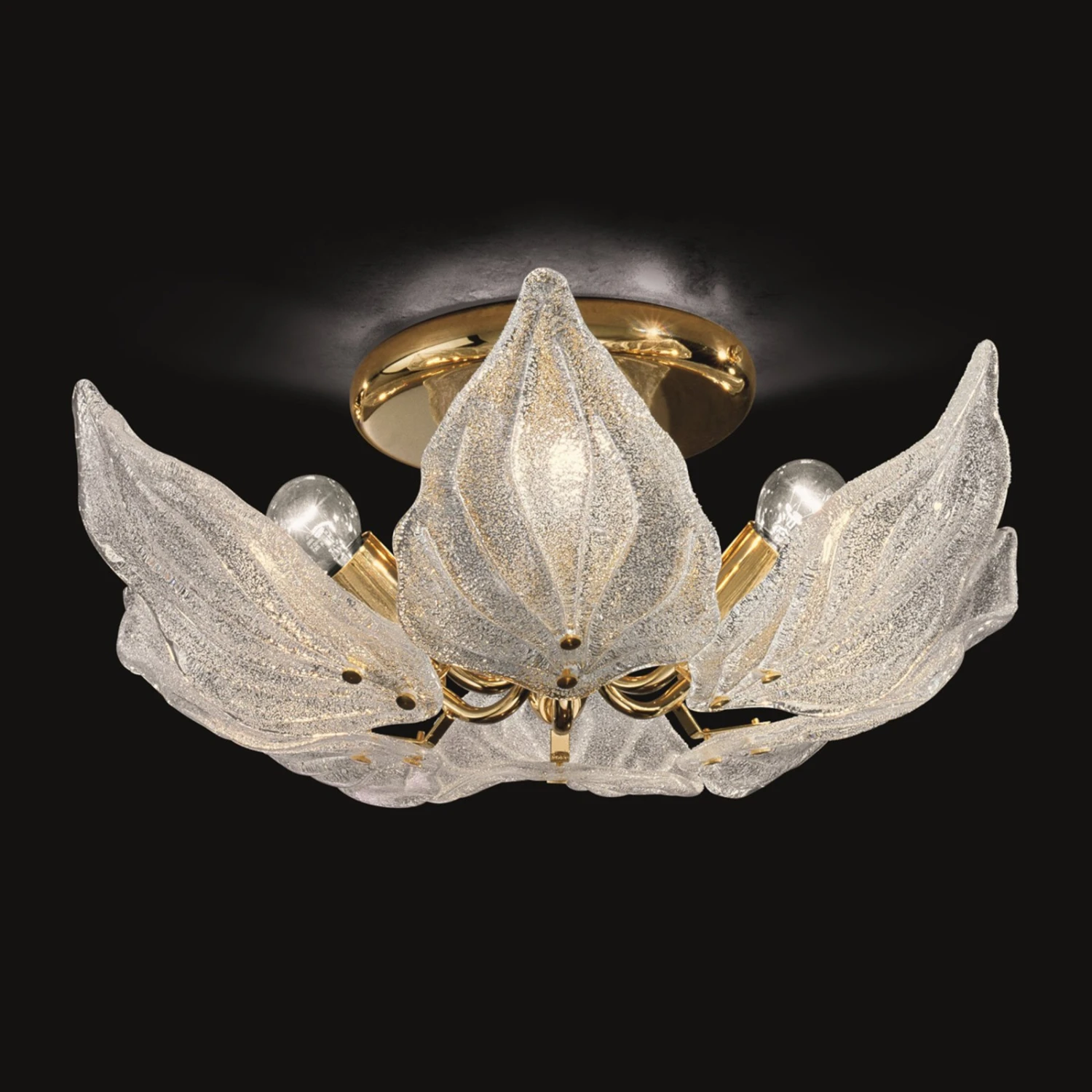 Entzückende Deckenleuchte Foglie in Blütengestalt mit Murano-Glas – sechsflammig