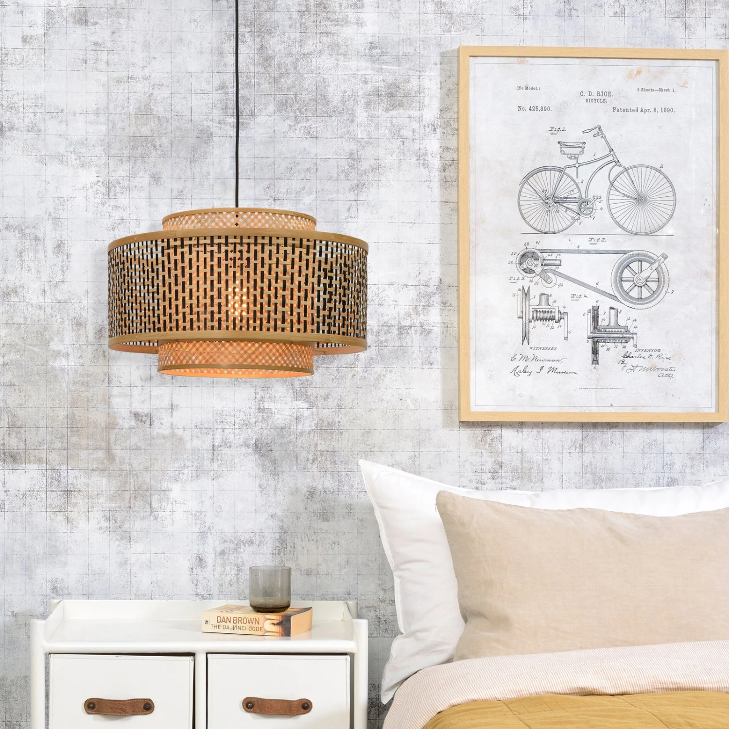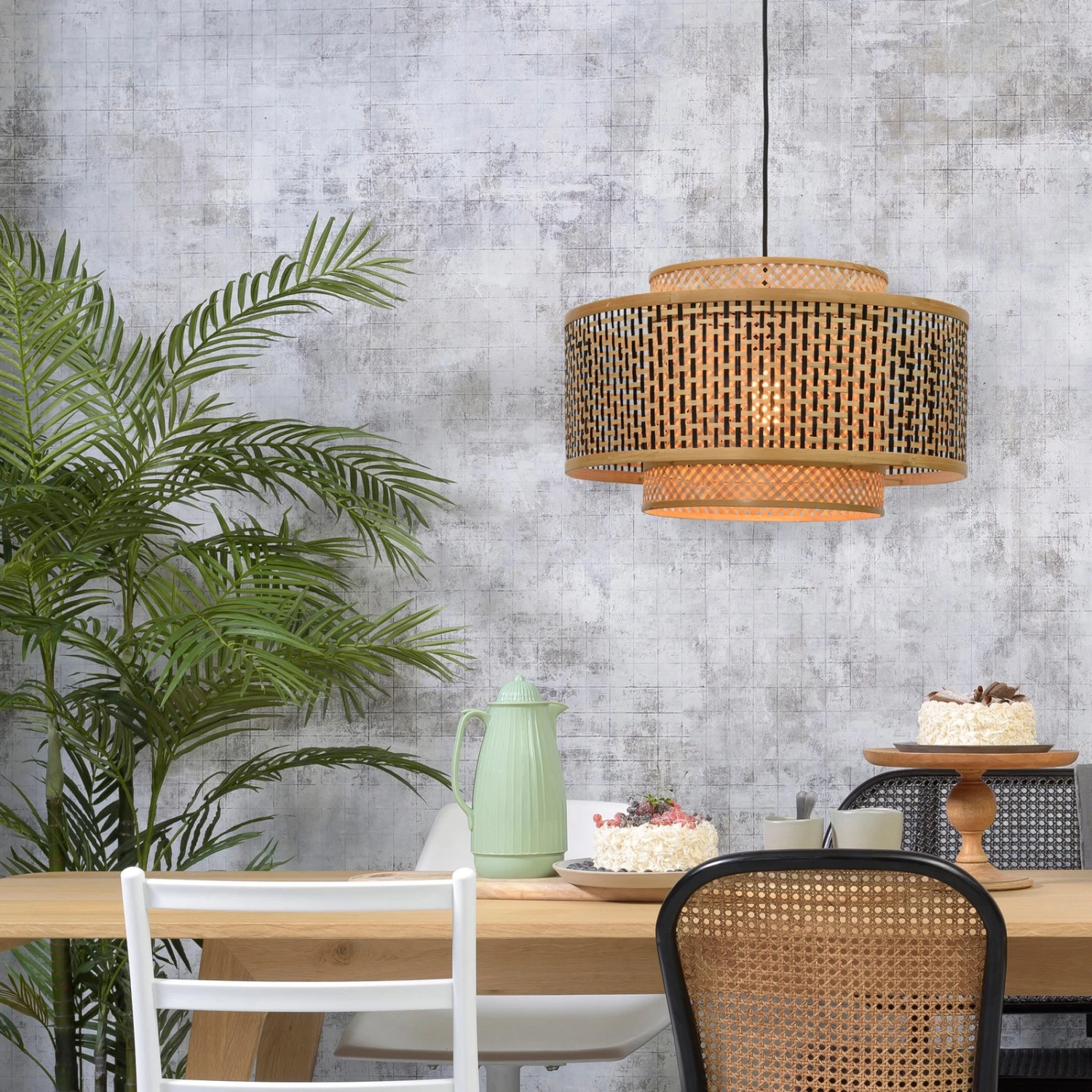 Aus nachhaltigem Bambus gefertigt – Pendelleuchte Bhutan mit Doppelschirm
