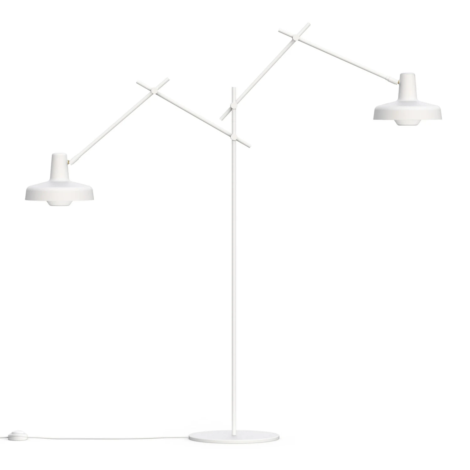 Stehleuchte Arigato Palace – flexibler Lichtspender mit rundem Schirm und Doppelarm