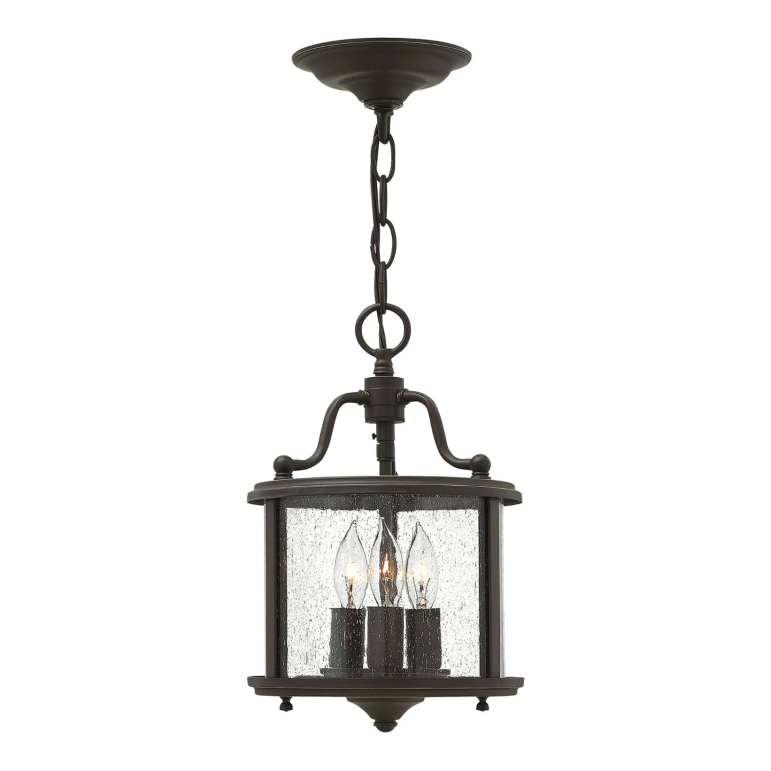 Wie ein Lichtspender aus einer längst vergangenen Zeit wirkt die mit drei Kerzenleuchten bestückte Hängeleuchte Gentry. Das abstrahlende Licht erhält durch die hübsche Struktur des transparenten Glasschirms eine besonders effektvolle Wirkung. Abhängung und Gestell bestehen aus Metall in solider Ausführung und sind mit einem „Old Bronze“ genannten Finish veredelt. Mit rustikaler Kettenabhängung ausgestattet.