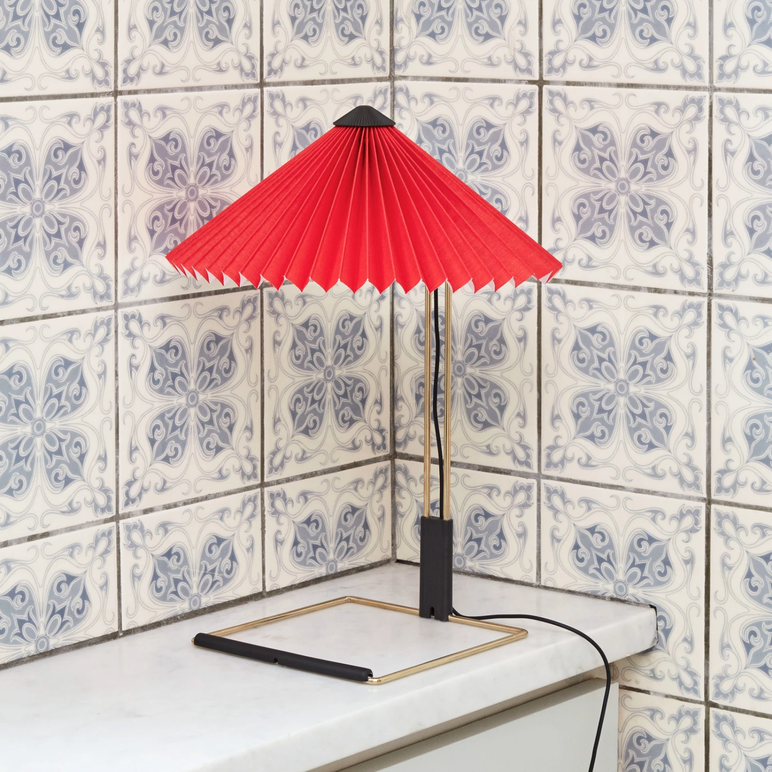 LED-Tischleuchte Matin 300 mit Plisseeschirm und Messinggestell