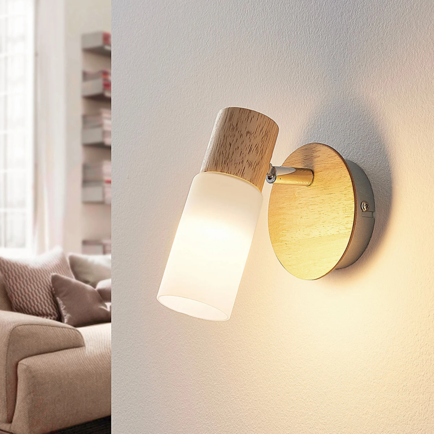 Dieser Holzspot überzeugt mit seinem markanten design. Der weiße, zylinderförmige Glasschirm verteilt den Lichtschein besonders weich, weshalb sich der Strahler sehr gut für die Beleuchtung von Wohnräumen eignet. Dabei kann man Christoph längst nicht nur an der Wand anbringen, auch die Montage als Deckenstrahler ist empfehlenswert. Der Holzdekor an der Halterung und als Verlängerung des Glasschirms lässt eine warme, natürliche Ausstrahlung entstehen.