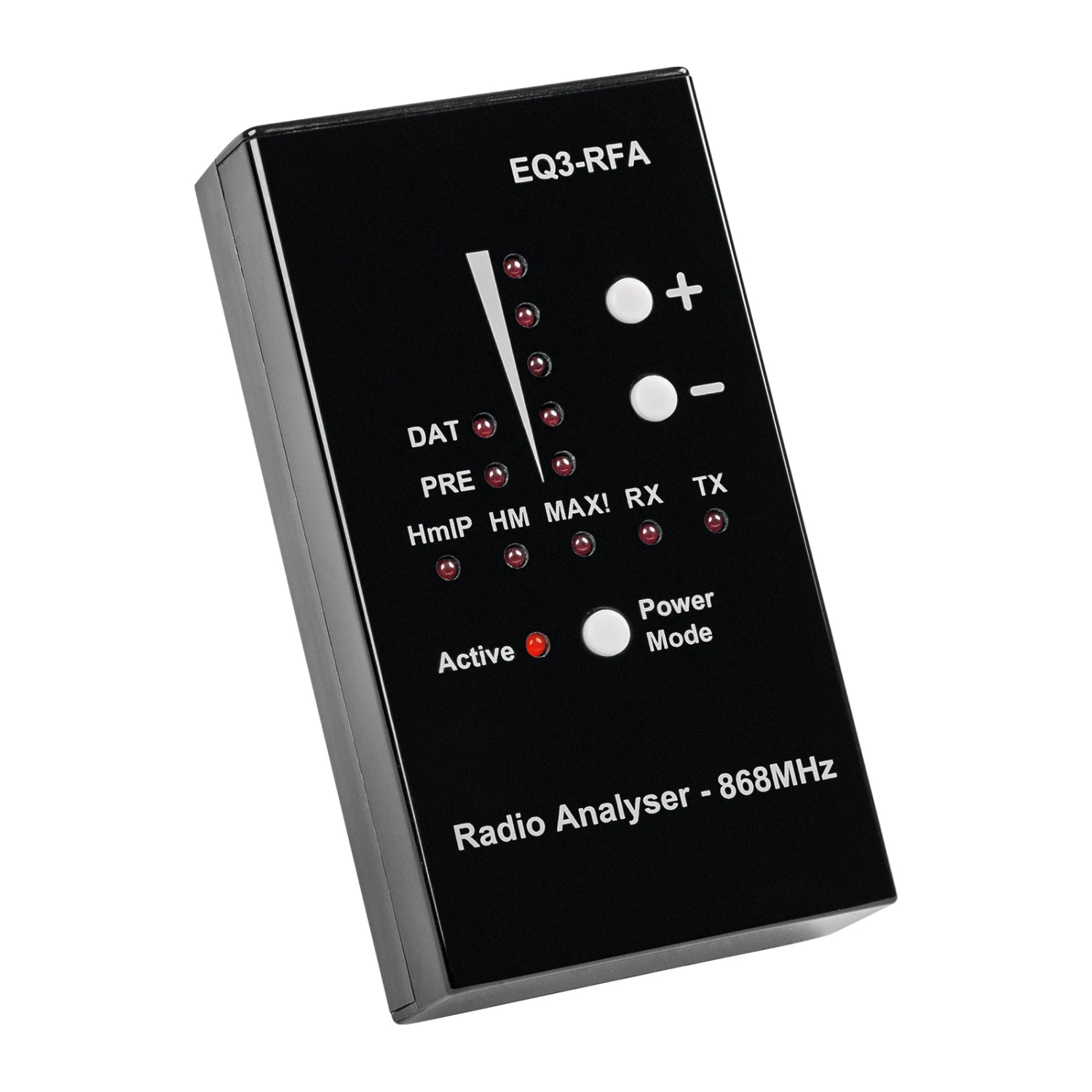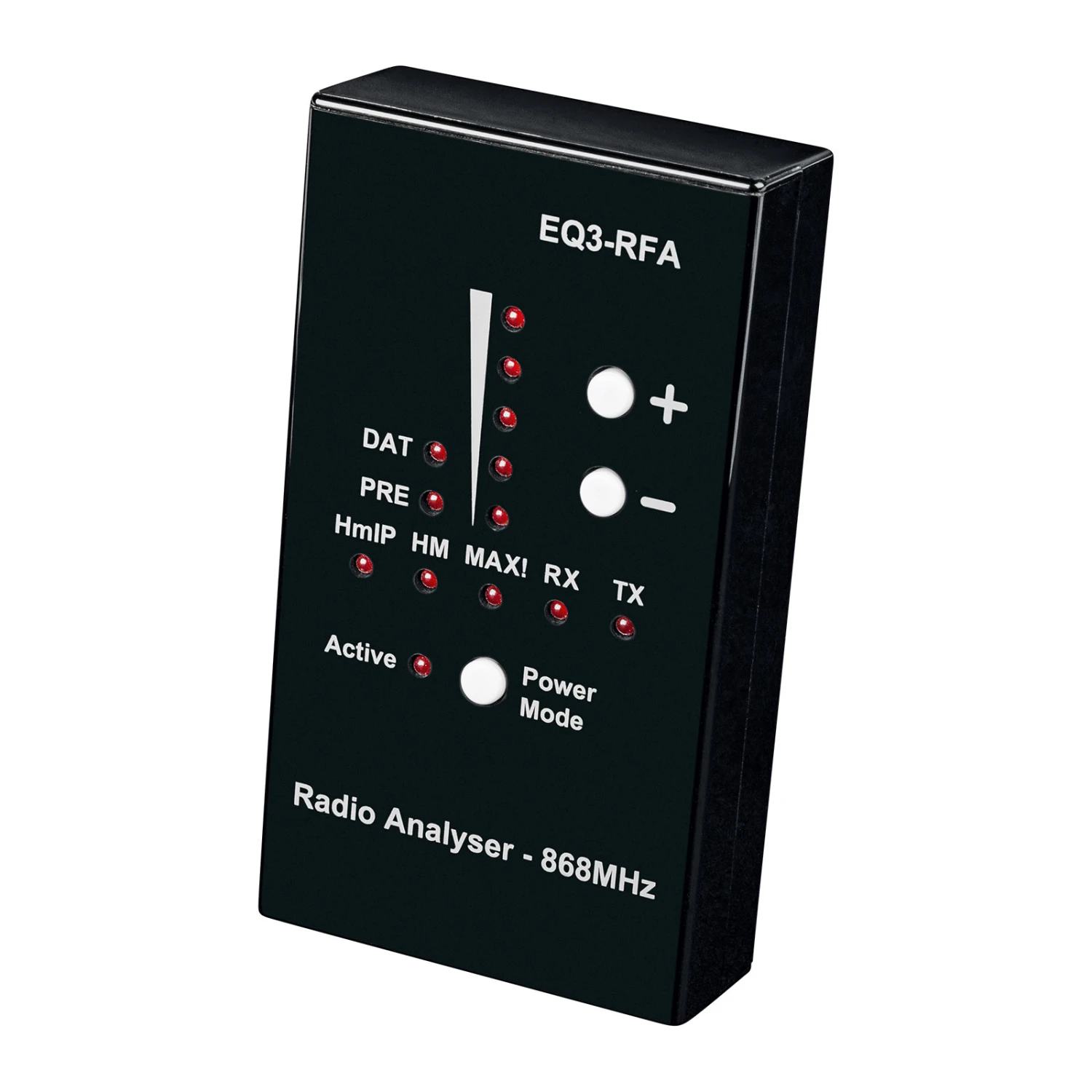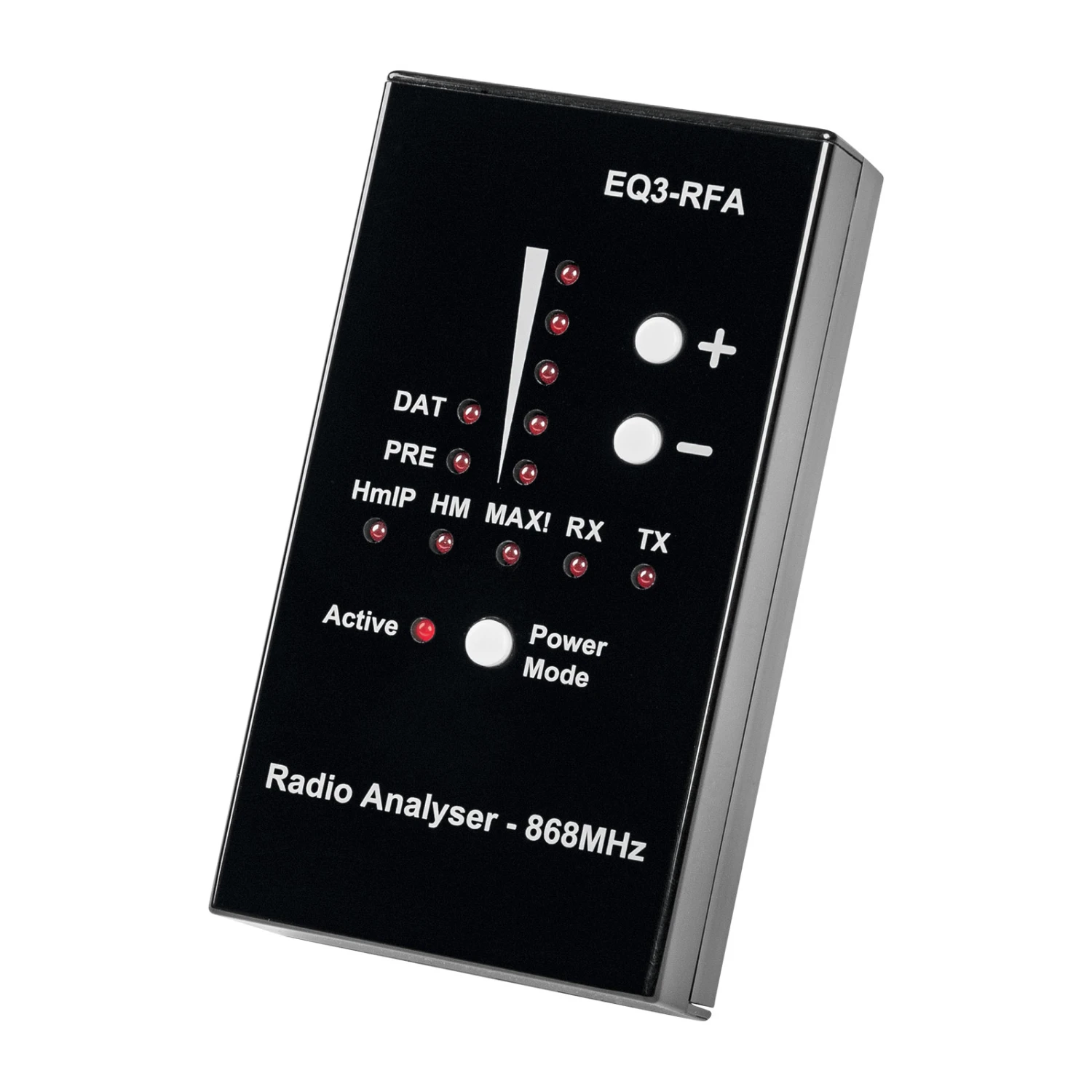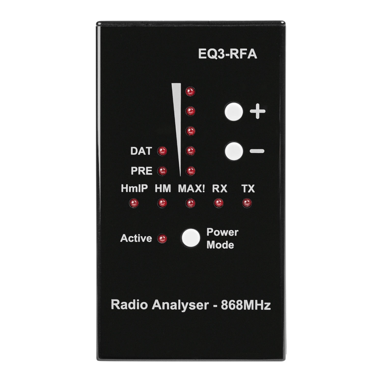 Dieser Analyser dient zur Ermittlung der Qualität der Funkverbindung von Homematic IP und anderen Funk-Geräten des Herstellers eQ-3. Er erkennt und zeigt die Sende- und Empfangsleistung der einzelnen Geräte, sodass deren Positionierung für eine störungsfreie Funk-Kommunikation erleichtert wird. Die Empfindlichkeit des Analysers kann je nach Entfernung angepasst werden.