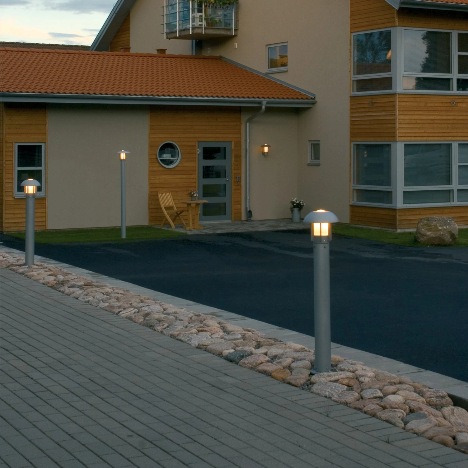 Die formschöne Außenwandleuchte Heimdal ist aus Aluminium gefertigt und mit Spritzwasserschutz ausgestattet (IP44). Sie ist korrosionsgeschützt (25 Jahre garantiert). Der Glasschirm wird durch die Aluminiumstreben geschützt, ohne dass Leuchtkraft eingebüßt wird. Handgefertigt in EU.