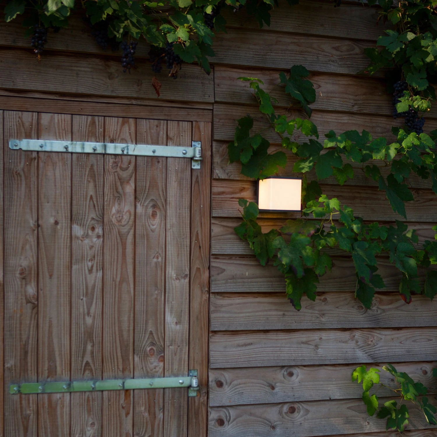 Ein Diffusor in Form eines Würfels wird durch eine dezente Wandbefestigung aus Aluminiumguss gehalten. Die Außenwandleuchte Doblo leuchtet in alle Richtungen und unterstützt so die Sicherheit rund um das Eigenheim. Durch die Anbringung mehrerer Leuchten hintereinander kann ein Laufweg stilvoll angedeutet werden. Besonders gut wirkt die moderne LED-Wandlampe an hellen oder hölzernen Außenwänden.