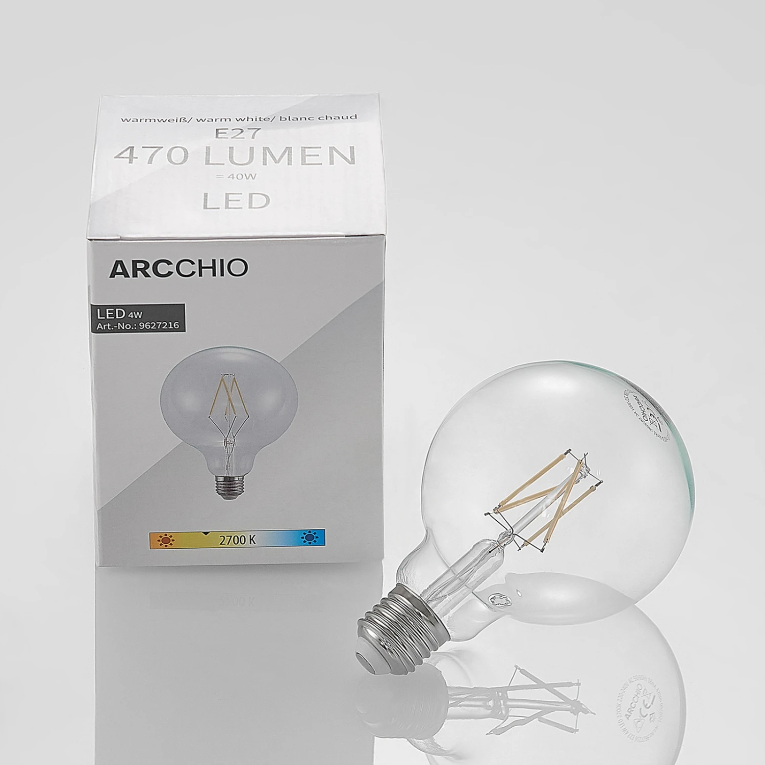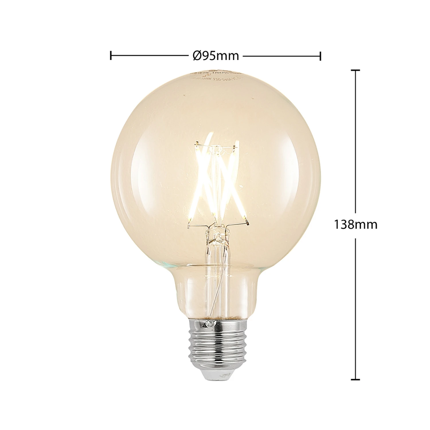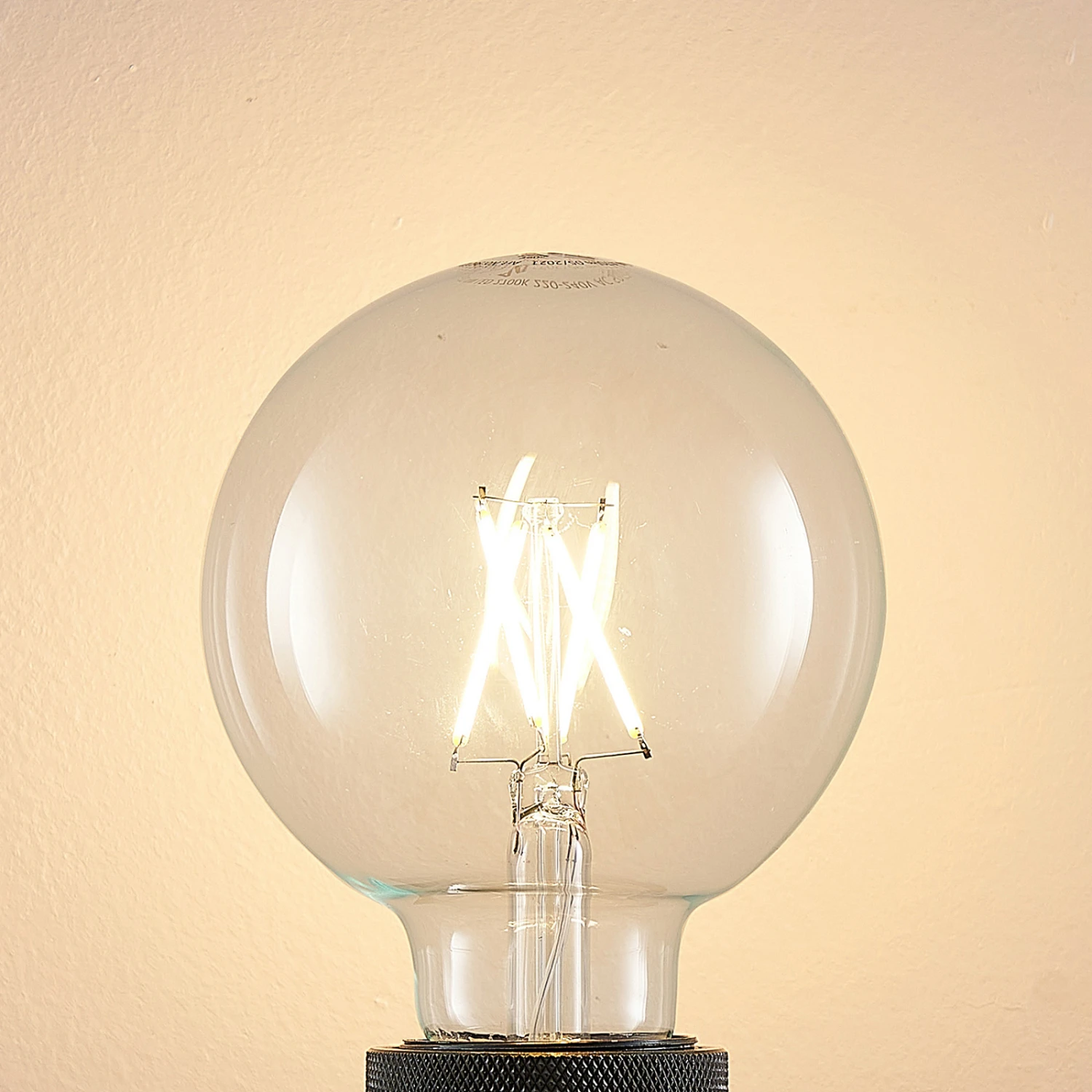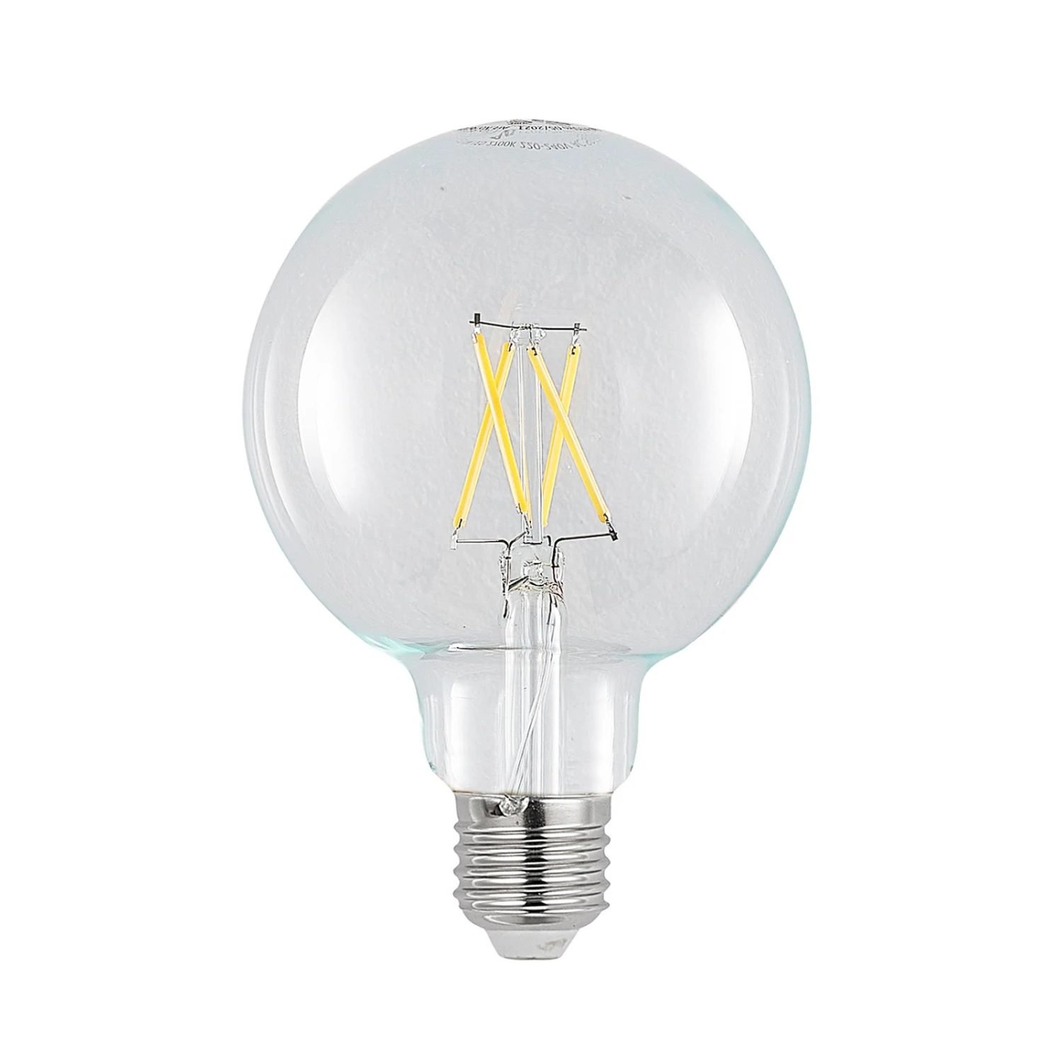 Diese LED-Lampe punktet mit niedrigem Stromverbrauch und ihrer trendigen Filamentoptik. Ihre Helligkeit entspricht einer herkömmlichen Glühlampe mit einer Leistungsaufnahme von 40 W und lässt sich mit einem Dimmer anpassen.