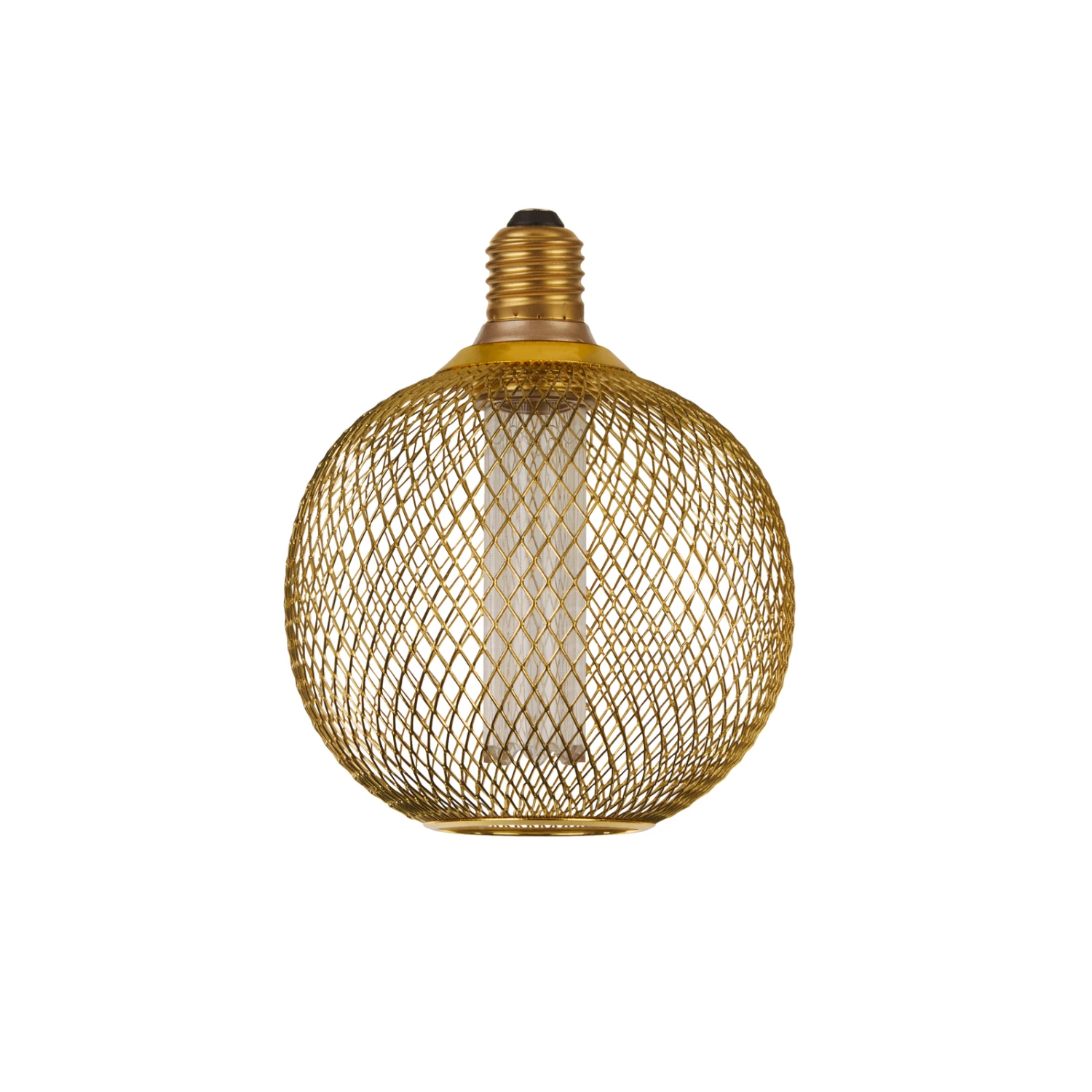 Die LED-Lampe Mesh ist ein Highlight in jeder E27-Fassung, denn die extravagante Lampe in Trommelform ist mit einem goldfarbenen Metallgeflecht umhüllt, das neben dekorativen Akzenten auch einmalige Lichteffekte im Wohnraum verspricht. Sie ist über den Hausanschluss dimmbar, so dass auch die Helligkeit auf die eigenen Bedürfnisse angepasst werden kann.