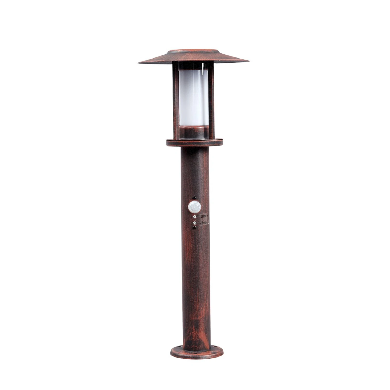 Rostfarbene LED-Sockelleuchte Pavlos mit Sensor