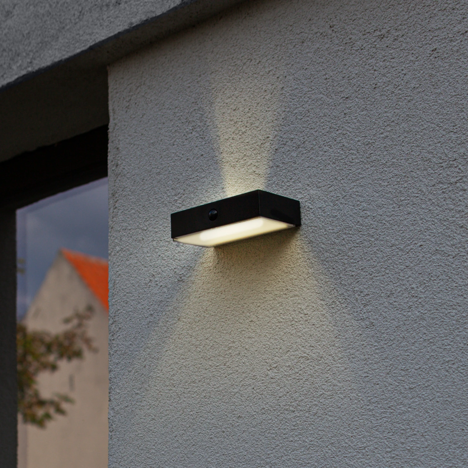 Fadi überzeugt mit ihrem schlichten Design und ihrem handfesten Charakter. Die LED-Solar-Wandlampe besitzt ein eckiges Design aus Kunststoff und besitzt eine schwarze Farbgebung. Ihre festverbauten LEDs verbreiten ihr Licht zur Ober- und zur Unterseite und lassen sich dimmen und können ihre Lichtfarbe zwischen warmweiß und tageslicht ändern. Der eingebaute Bewegungssensor und das Solarpanel verleihen Fadi zweckdienliche Eigenschaften, die im Außenbereich sehr hilfreich sind. Die Schutzart IP54 macht die LED-Solar-Wandlampe nachweislich staubgeschützt und schützt sie gegen Spritzwasser, sodass sie perfekt gegen die Wetterbedingungen vor der Haustür gewappnet ist.