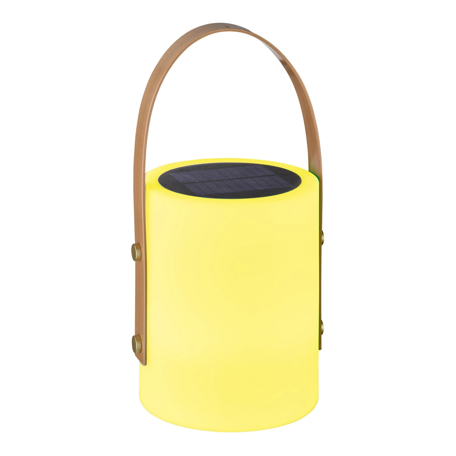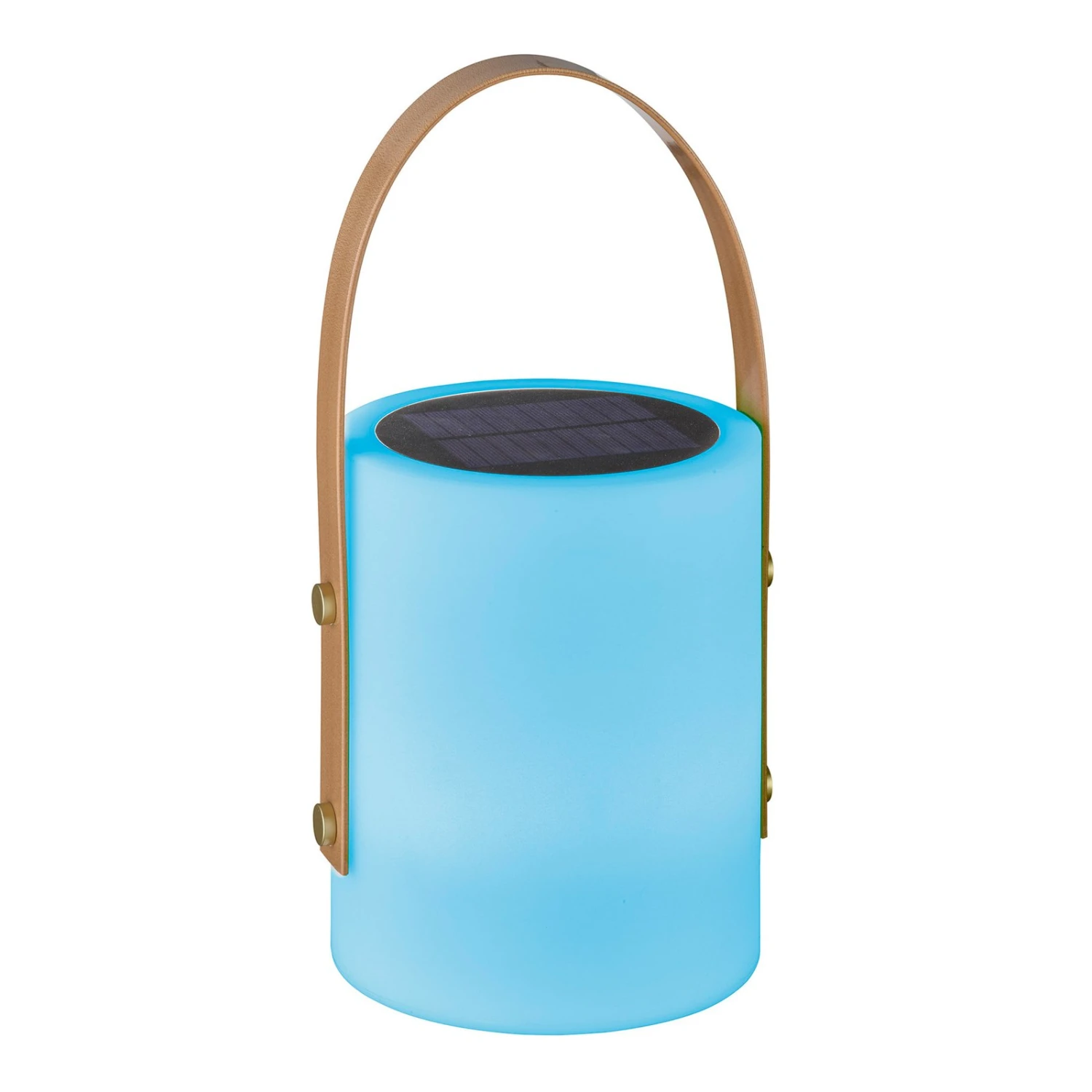 An der Oberseite der LED-Tischleuchte Bari ist ein Solarmodul angebracht, das die Sonnenenergie speichert und das verbaute LED-Leuchtmittel zum Leuchten bringt. Die Leuchte besteht aus weißem Kunststoff und besitzt einen braunen Trageriemen. Außerdem verfügt sie über Schutzart IP44 und eignet sich daher ideal für die Nutzung im Freien. Die Helligkeit der Tischleuchte lässt sich in drei Stufen verändern (30% – 60% – 100%). Bari verfügt zudem über eine RGB-Farbwechselfunktion in sieben Farbstufen. Die Funktionen können mit der mitgelieferten Fernbedienung angewählt werden.