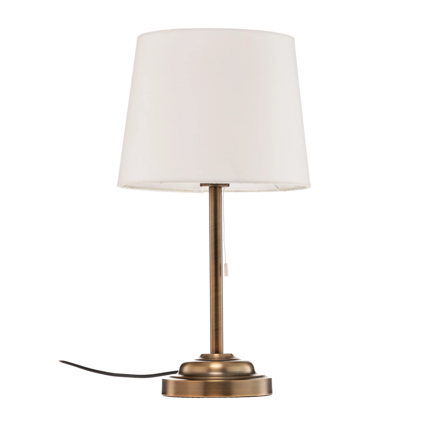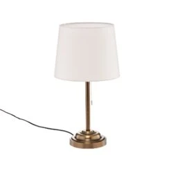 Messingfarbene Tischleuchte Alomira mit einem Zugschalter
