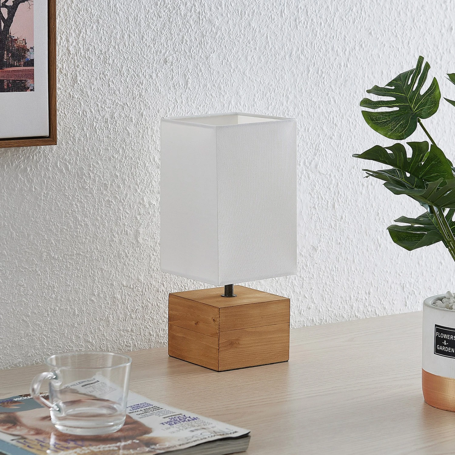 Die Tischleuchte Arbin präsentiert sich in einem dezenten Look und greift mit ihrem Design skandinavische Stilelemente auf. Sowohl der Leuchtenfuß als auch der Schirm sind eckig gestaltet und bringen dadurch Struktur in den Raum.