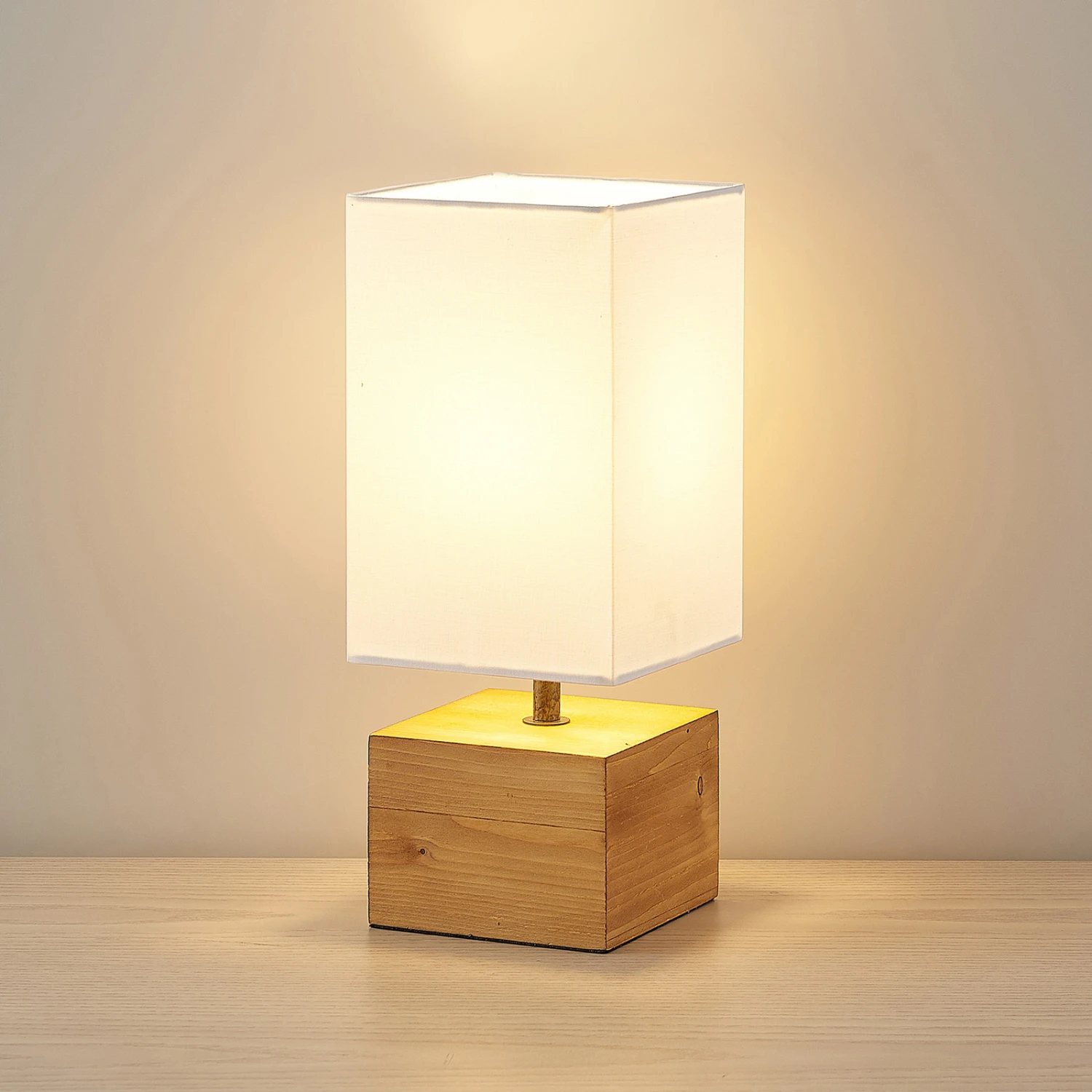 Tischleuchte Arbin aus Textil und Kiefernholz
