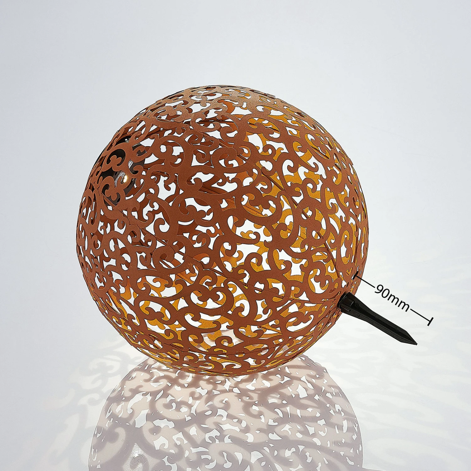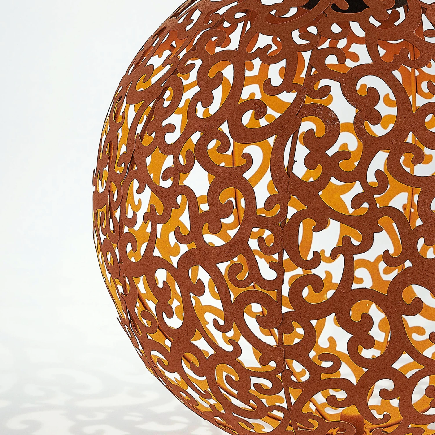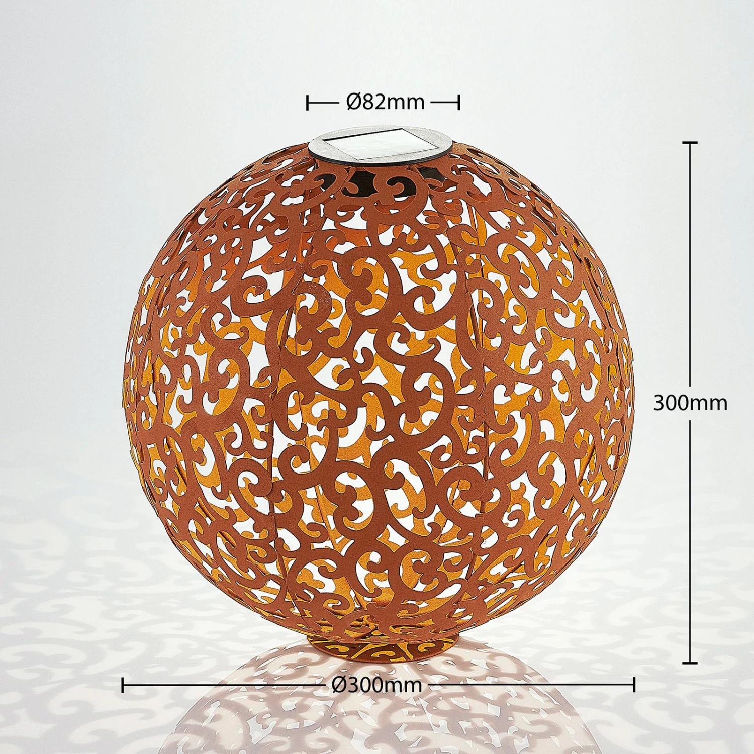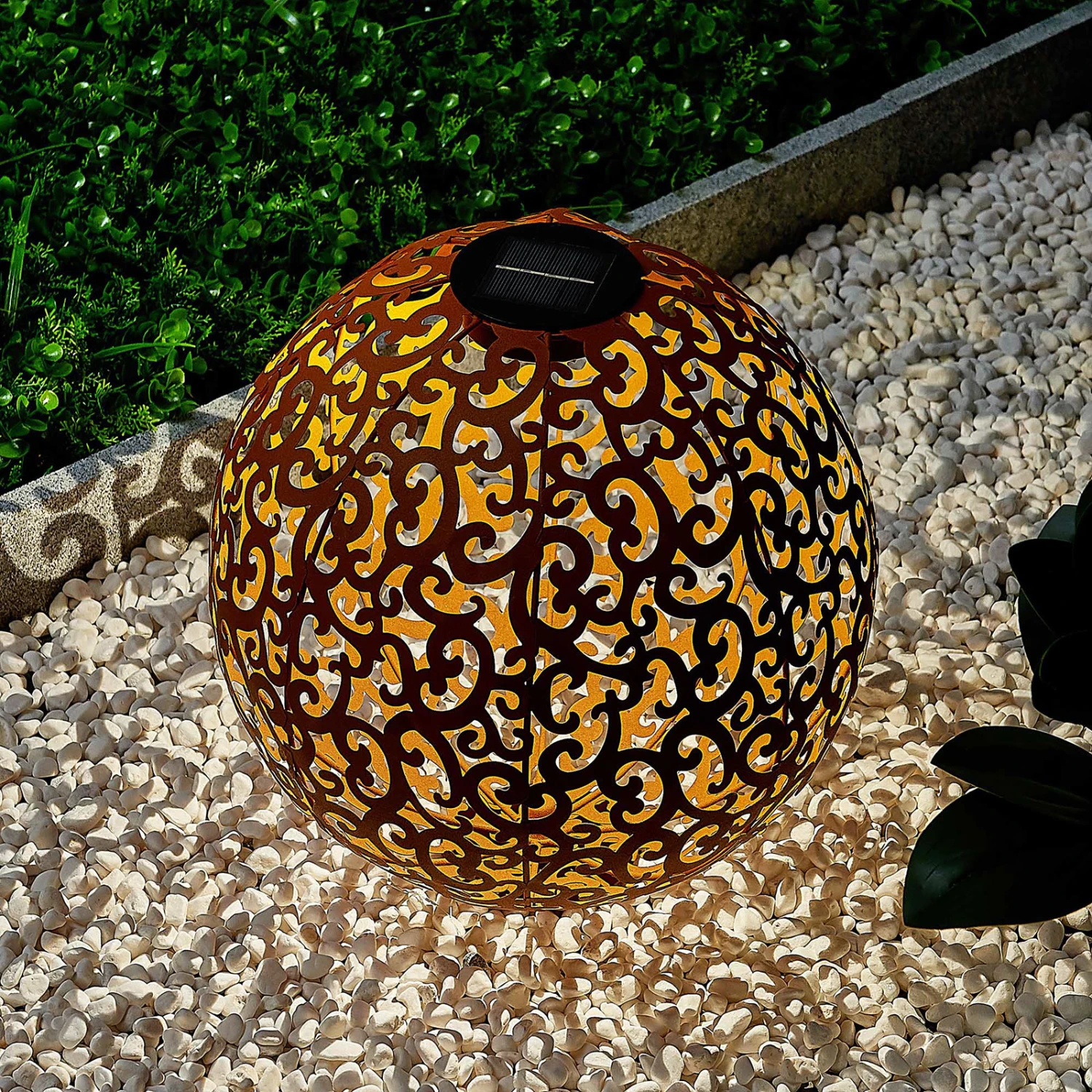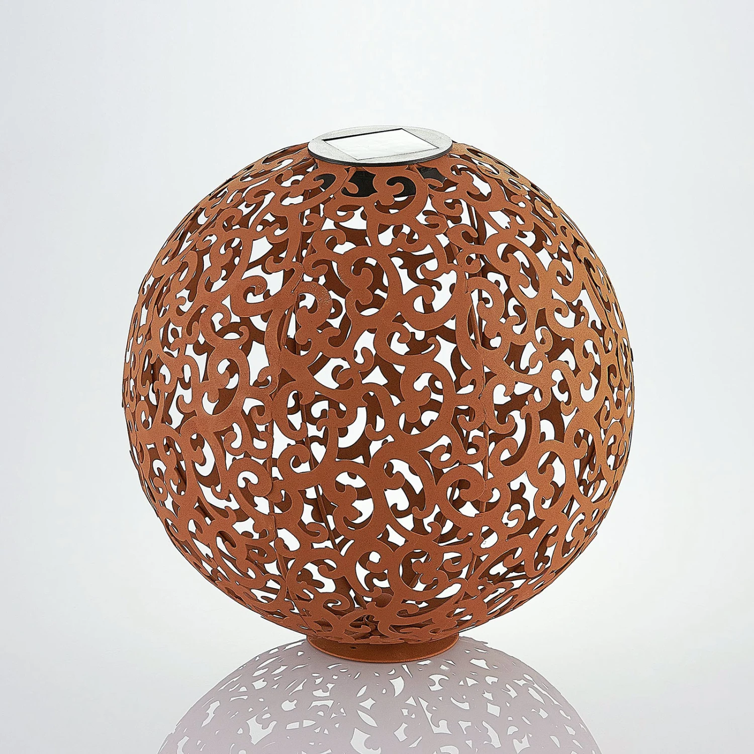 Rostfarbene, kugelförmige LED-Solarlampe Eduta mit romantischem Rankenmuster