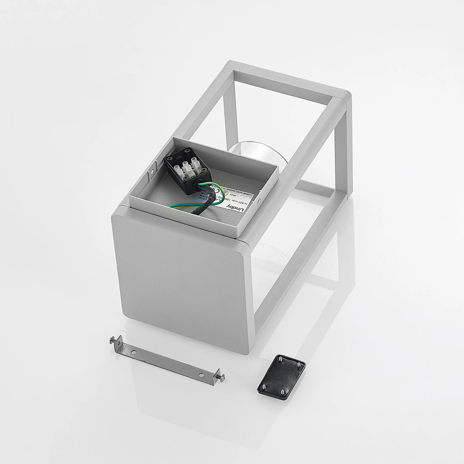 Diese Leuchte präsentiert sich in einem sehr modernen und gradlinigen Design. Sie hat ein Gestell, das gänzlich aus Aluminium hergestellt wurde und einen inneren Leuchtenschirm aus durchsichtigem Kunststoff hat. Dadurch ist die Brennstelle gut sichtbar, weshalb man hier auf ein dekoratives Leuchtmittel zurückgreifen sollte.