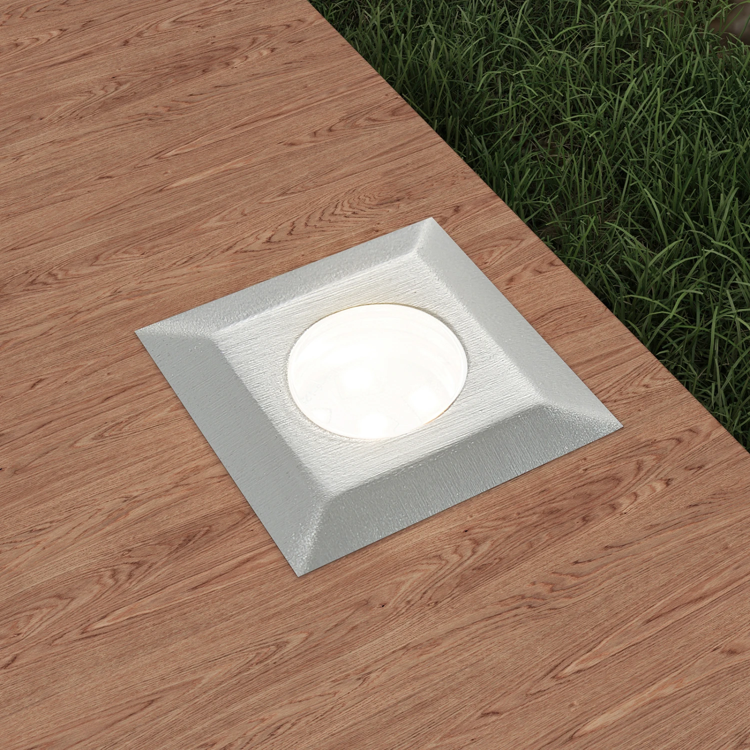 Diese Bodeneinbauleuchten mit integrierten LEDs überzeugen mit einer zeitlosen Gestalt in eckiger Form und universaler Einsetzbarkeit. Sie sind kompakt gestaltet und bieten nach Einbruch der Dunkelheit zuverlässig Licht zum sicheren Orientieren. Der Leuchtenkorpus besteht aus Aluminium. Die Lieferung der LED-Bodeneinbaustrahler erfolgt im praktischen Dreier-Set.