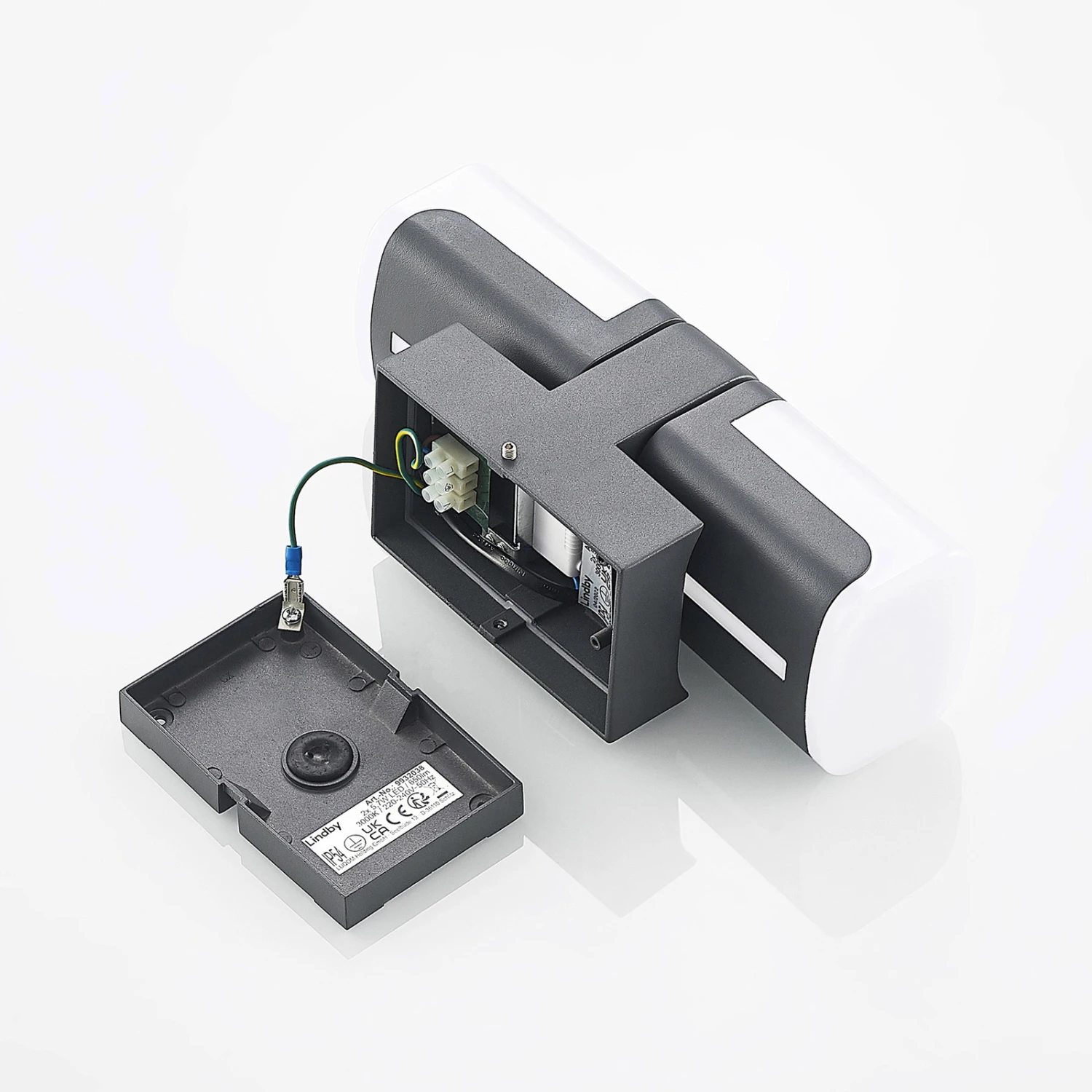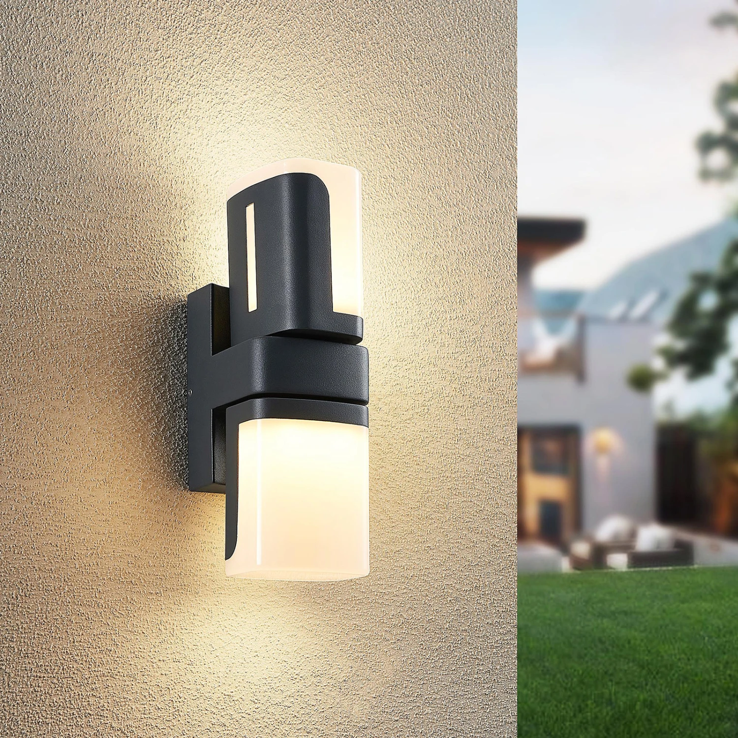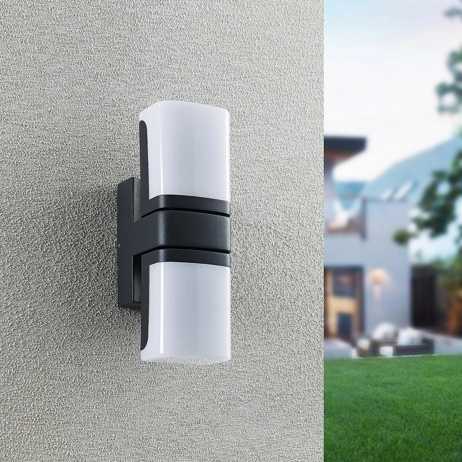 Jasiah besteht aus Aluminium und Kunststoff und ist in einem stimmigen Schwarz gehalten. Ihre festverbauten LEDs sitzen in zwei drehbaren Köpfen, die eine flexible Beleuchtung ermöglichen. Die LED-Außenwandlampe generiert ein warmweißes Licht, welches sich hervorragend für den Außenbereich geeignet ist, wenn ein gemütliches Ambiente erzeugt werden möchte. Die Schutzart IP54 geschützt die Leuchte gegen Staub und Spritzwasser und macht sie perfekt für eine überdachte Einfahrt oder Terrasse. Die Farbkombination aus Dunkelgrau und dem Weiß des Kunststoff-Diffusors rundet das moderne Design der LED-Außenwandleuchte Jasiah ab.