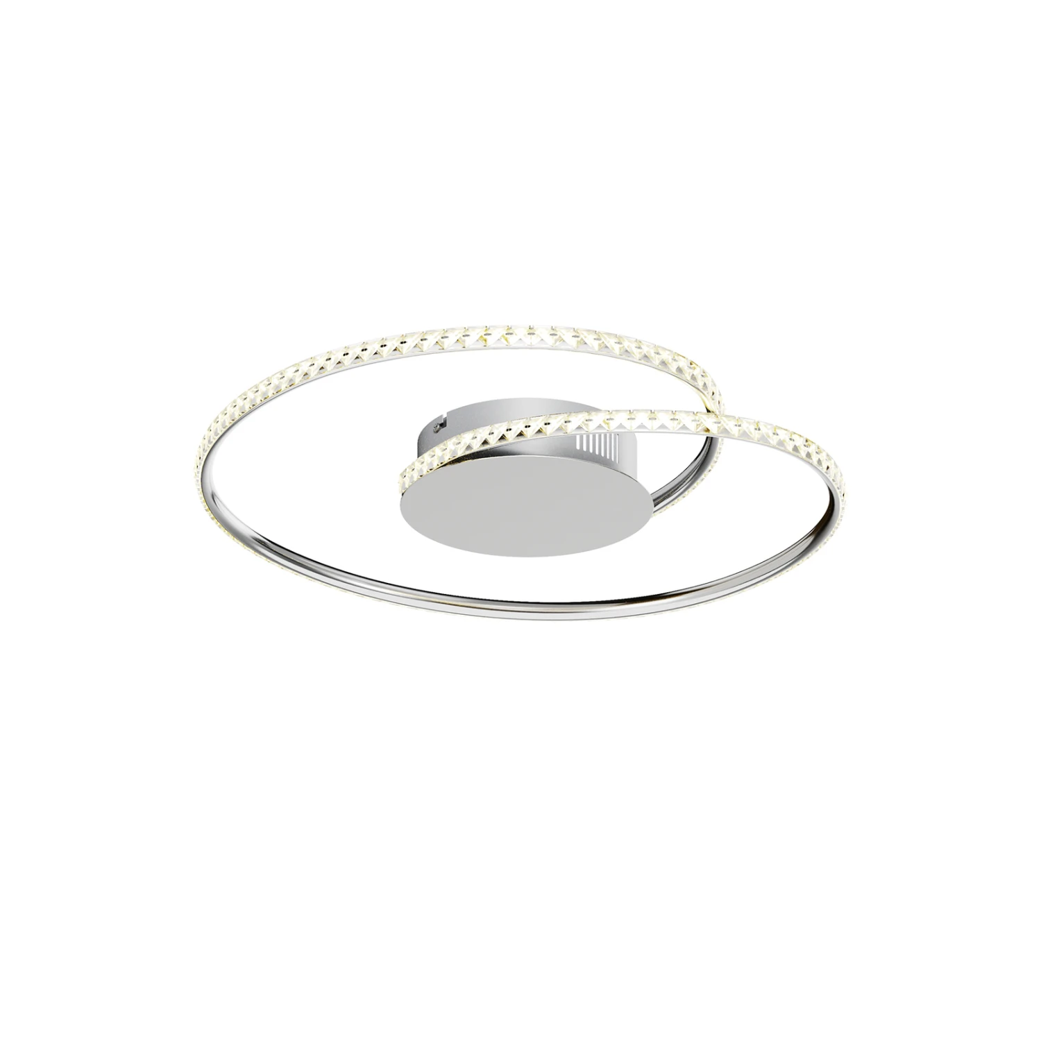 Joline bietet ein funkelndes Lichterlebnis, denn das verchromte Metallgestell in filigraner Form, das einer Brezel oder einer Spirale ähnelt, ist an der Außenseite mit zahlreichen Kristallen belegt, die alle viereckig und geschliffen sind. Das hat nicht nur zur Folge, dass das Erscheinungsbild der LED-Deckenlampe besonders luxuriös erscheint, sondern ist auch verantwortlich für das einzigartig glitzernde Lichtbild, das sofort entsteht, wenn man Joline einschaltet. Dank der verwendeten LED-Technik kann sowohl eine gute Leuchtkraft als auch ein relativ niedriger Stromverbrauch sichergestellt werden.