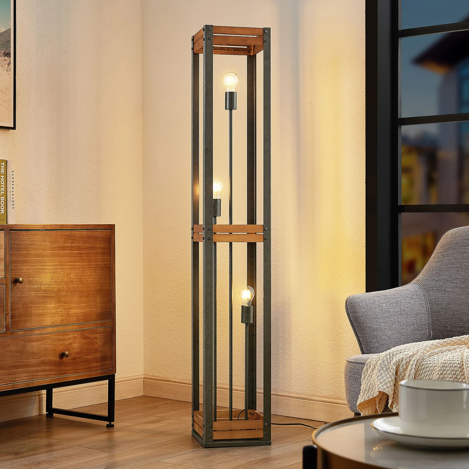 Schirmfreie Stehleuchte Kanisa in rechteckiger Form, mit drei Lichtquellen