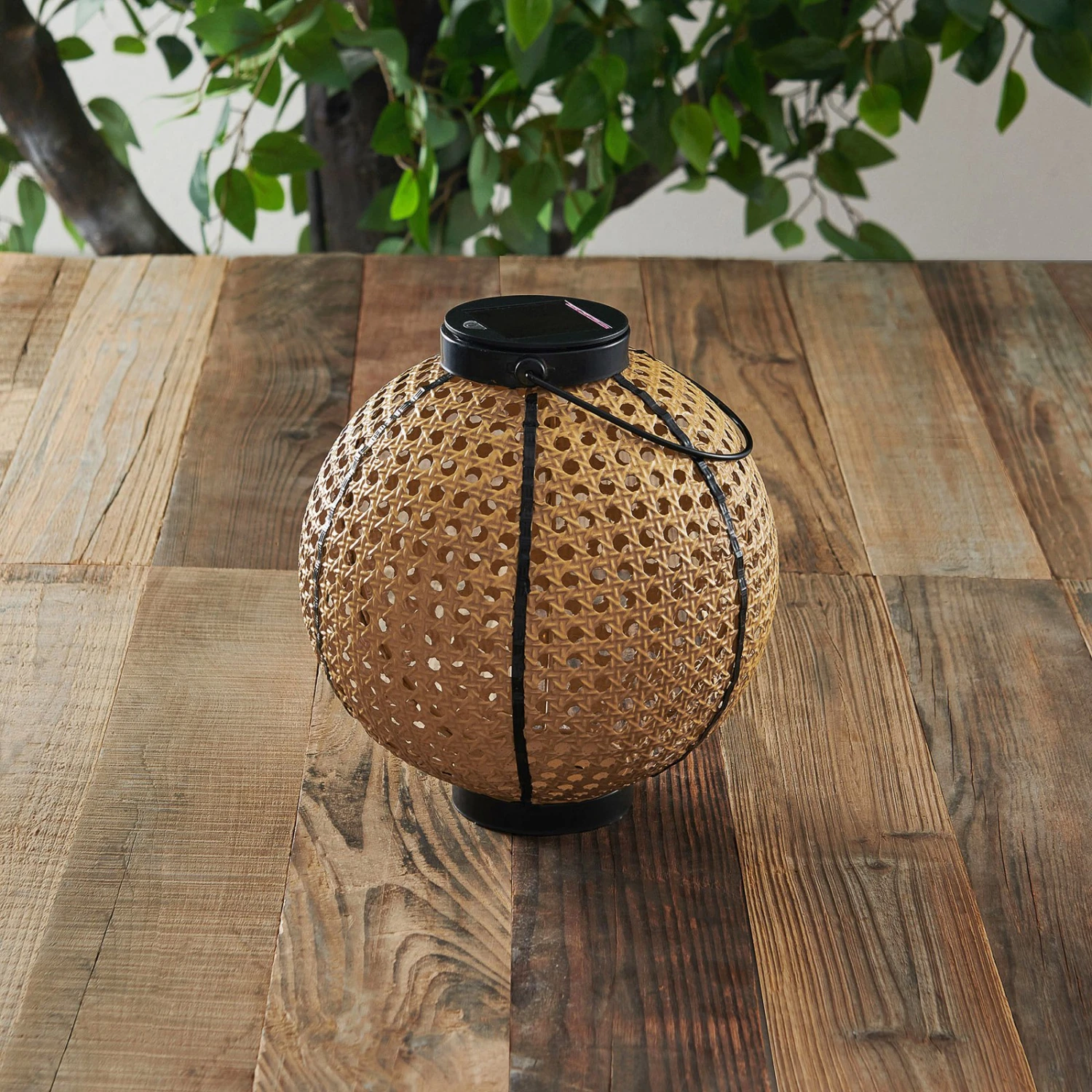 LED-Solarlaterne Lemark in dekorativer Bambusoptik und Kugelform, schöner Lichtspender für Garten und Terrasse