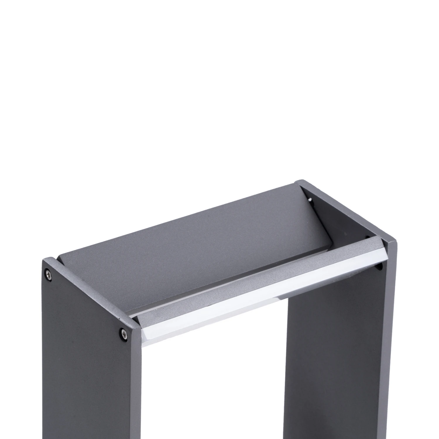 Luitgard ist eine besondere LED-Wegeleuchte. Sie besitzt einen eckigen, rahmenförmigen Körper, der aus Aluminium hergestellt ist und eine dunkelgraue Farbgebung besitzt. An der Spitze der Körpers sitzt ein festverbautes LEDs, welches eine warmweiße Beleuchtung generiert, die perfekt für ein gemütliches Ambiente im Außenbereich geeignet ist. Darüber hinaus ist sie durch die Schutzart IP54 nachweislich gegen Staub und Spritzwasser geschützt, was ihr einen robusten Charakter verleiht. Die LED-Wegelampe Luitgard besitzt ein minimalistisches Design was sich gut an den Baustil eines Hauses anpasst
