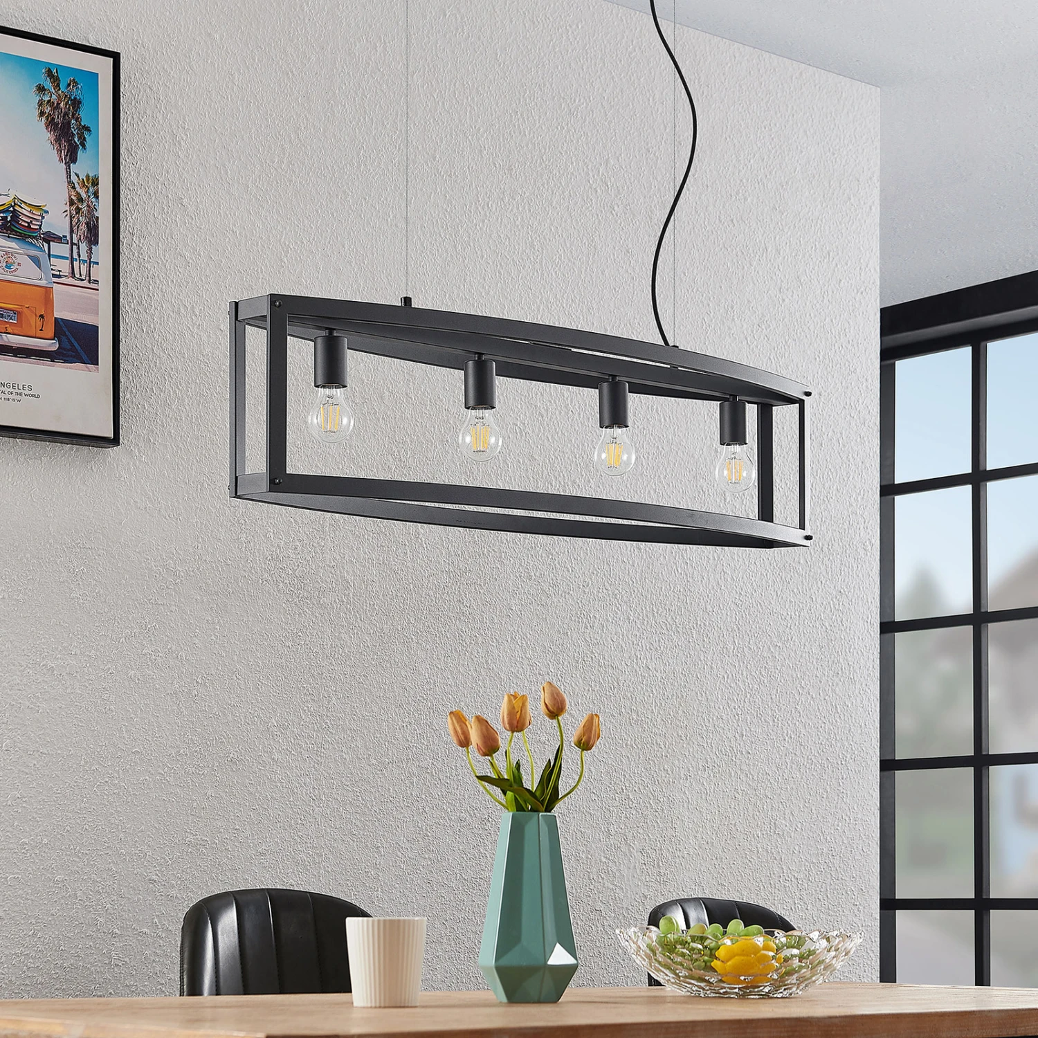 Die formschöne Hängeleuchte Mizgin schafft Gemütlichkeit und perfekte Beleuchtung in Ihren vier Wänden. Die Hängeleuchte bereichert Ihr persönliches Einrichtungskonzept durch das rustikale, ländliche Design zusätzlich. Die Pendelleuchte aus Stahl ist mit E27-Fassungen versehen. Ob im Essbereich, dem Wohn- oder Schlafzimmer – diese Leuchte findet auch in Ihrem Zuhause einen Platz. Sämtliche Qualitäten und Besonderheiten, die die Marke Lindby mit sich bringt, kombiniert das Modell Mizgin gekonnt. Die schwarze Lampe erfüllt auch im ausgeschalteten Zustand eine dekorative Funktion.