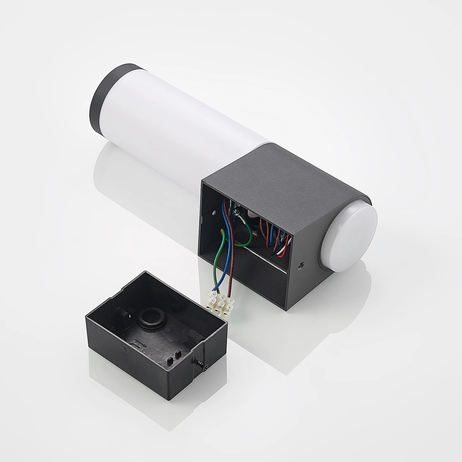 Zylindrische Außenwandleuchte Okari mit Bewegungsmelder
