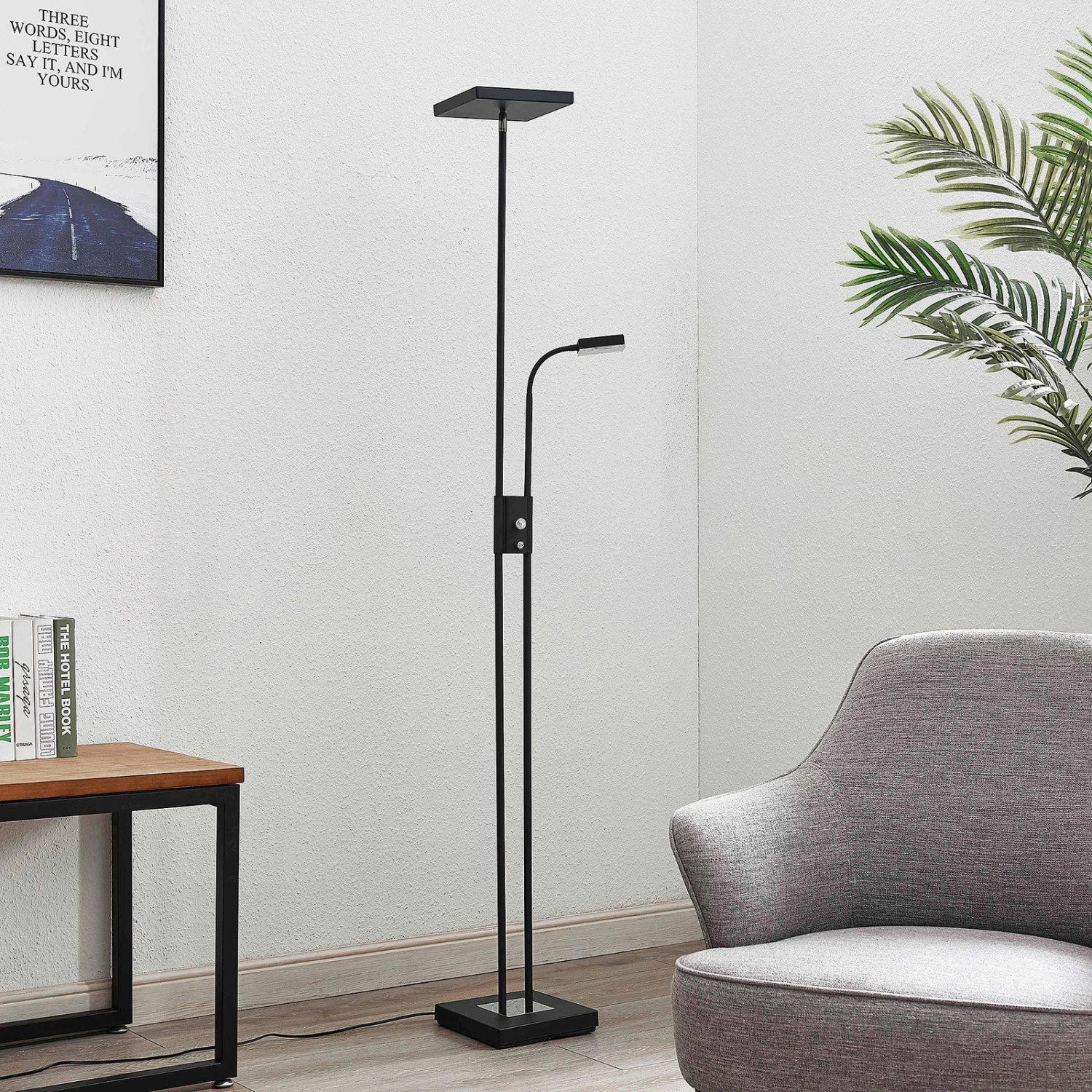 Auffällige LED-Stehleuchte Seppa im schwarzen Design