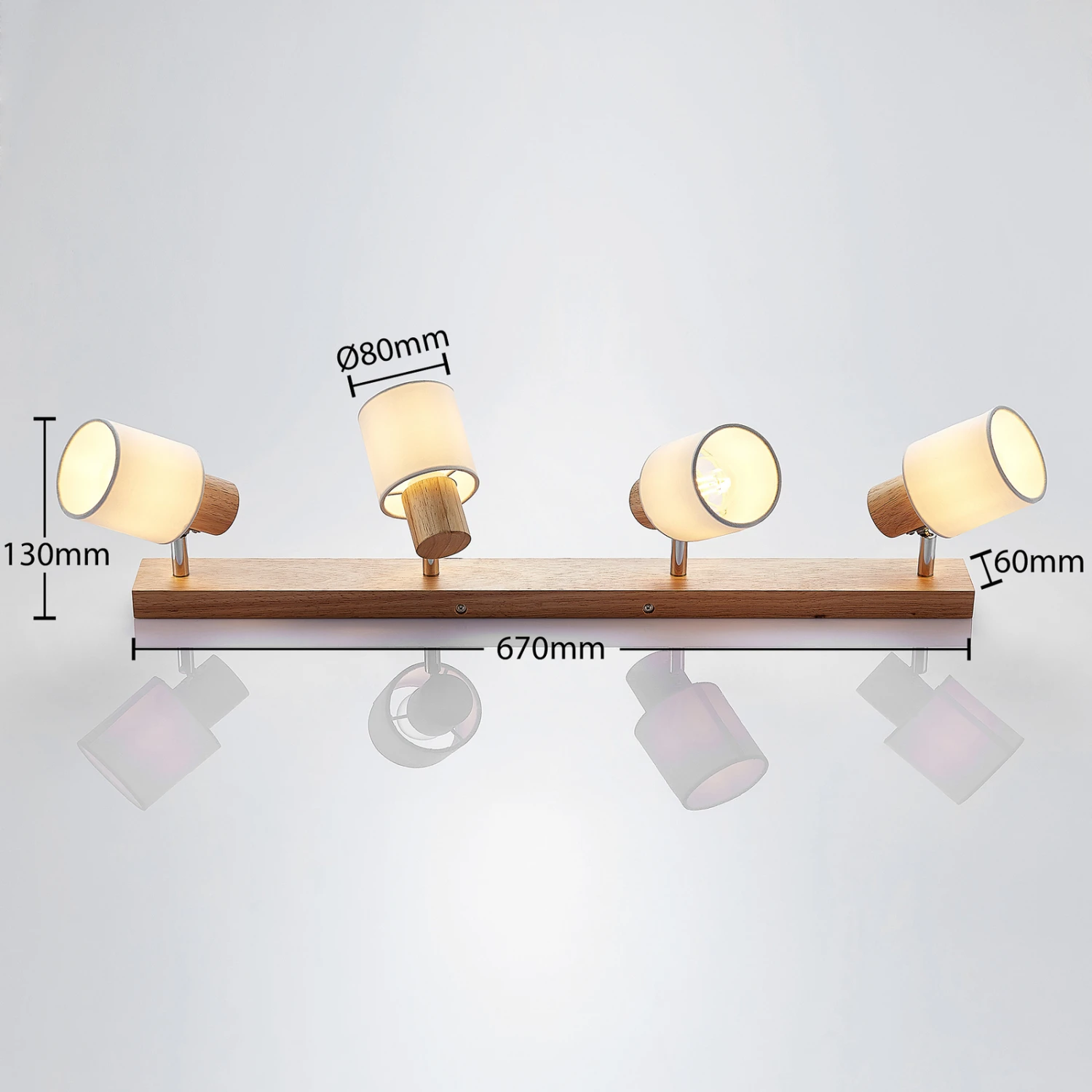 Vierflammige Holz-Deckenleuchte Wanessa mit beweglichen Strahlern