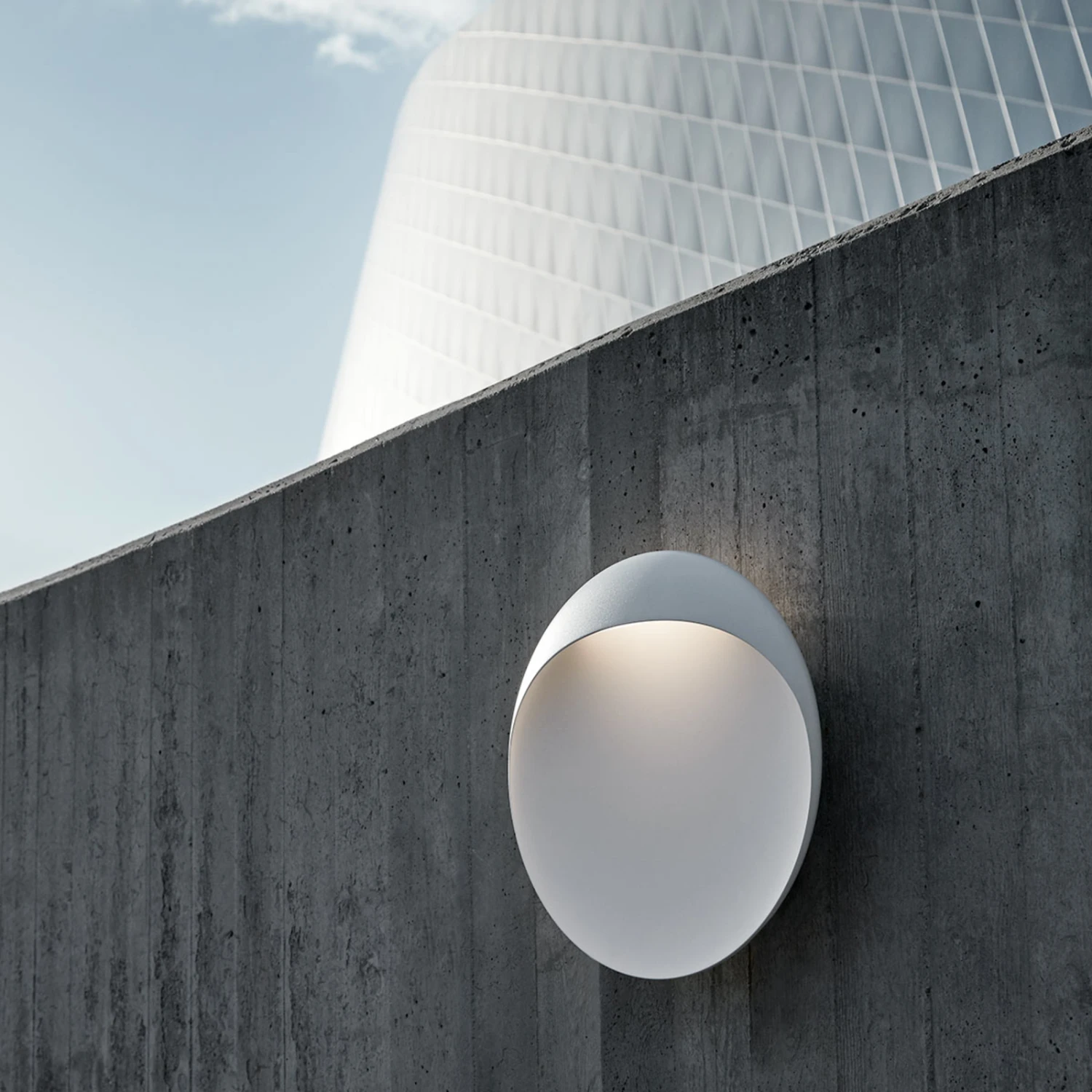 Die Lichteffekte bewirken eine attraktive, starke Leuchtkraft sowie ein stimmungsvolles, einladendes Ambiente. Die Form selbst ist von der Wandhalterung leicht abgehoben, sodass es scheint, als würde die Wandleuchte schweben. Flindt ist die ideale Wahl sowohl für die Beleuchtung von Eingangsbereichen, Treppenhäusern und Fluren als auch für die Erhellung von Hausfassaden.