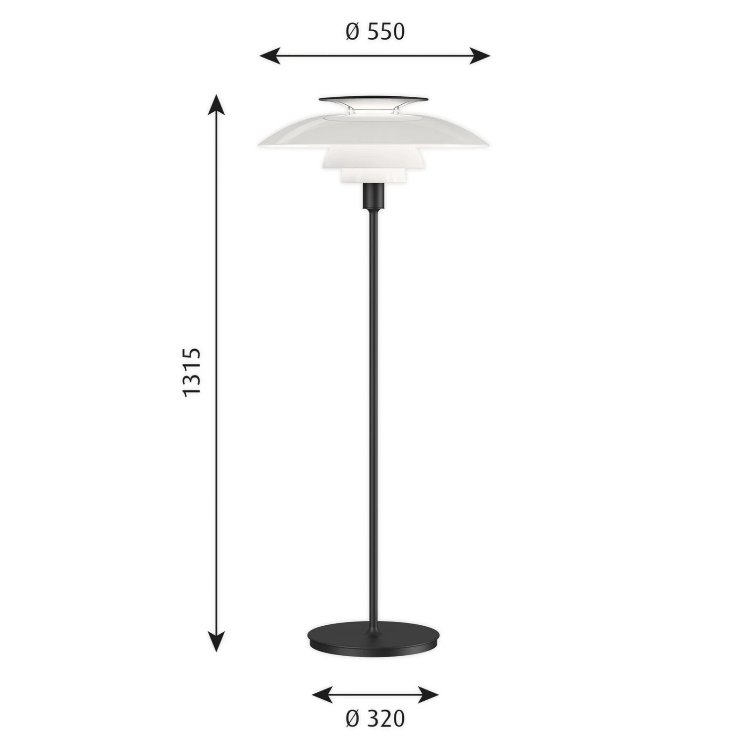 Stehleuchte PH 80 mit dreilagigem Schirm aus opalweißem Acryl
